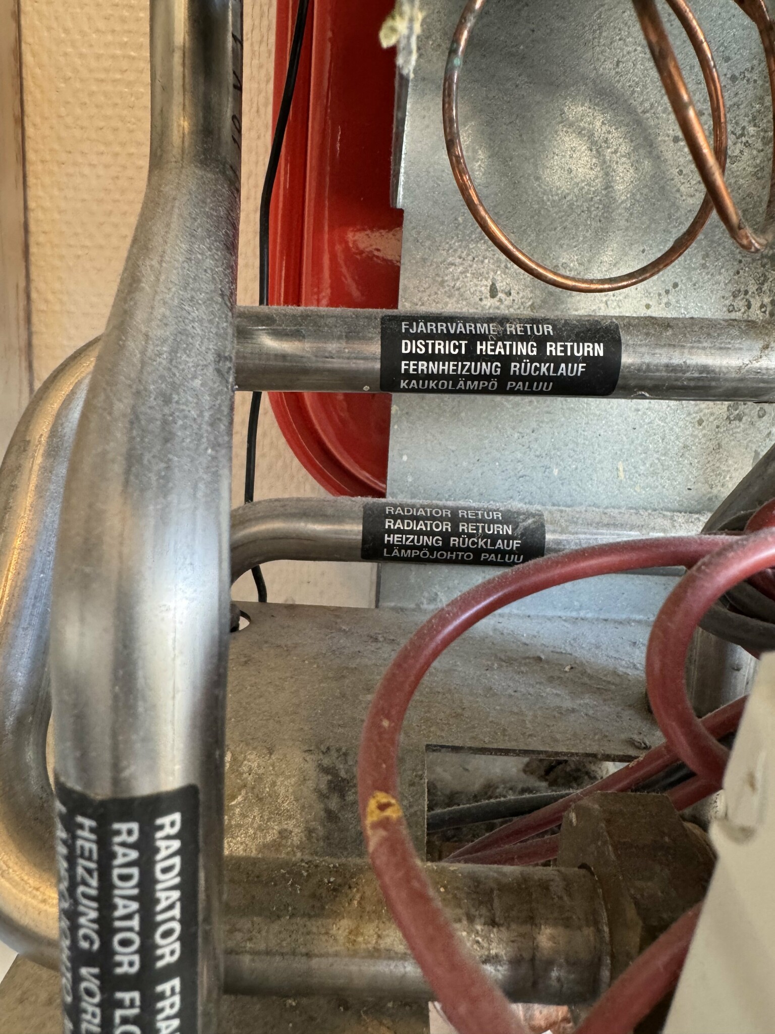 Detta med fjärrvärme & golvvärme är helt nytt för oss (första huset). Så jag vet inte riktigt svaret på alla frågor, förutom att det är två rörsystem på radiatorerna om jag förstått det rätt. Golvvärme finns bara nere. Prövade att lufta elementen idag, men ingen luft alls, sippra ut vatten direkt. Gissar på att trycket är för lågt på fjärrvärmen kanske, såg detta idag.. (se bild).Demmpa skrev: