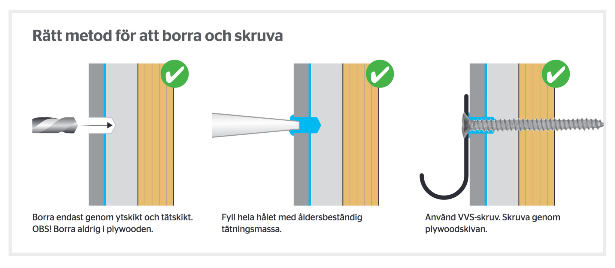 Man ska väl borra igenom tätskiktet också, om det har någon större betydelse eller inte låter jag dock vara osagt. Men kanske finns en viss möjlighet att skruven nyper i folien och skadar den mer än nödvändigt.T tank77 skrev: