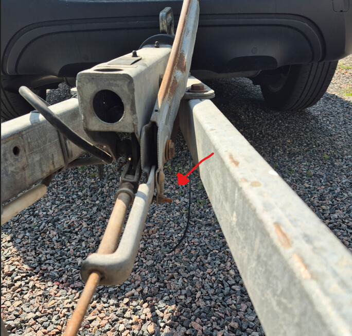 Det som istället finns är en bult som håller ihop två bleck som utgör den nedra delen av bromsen.