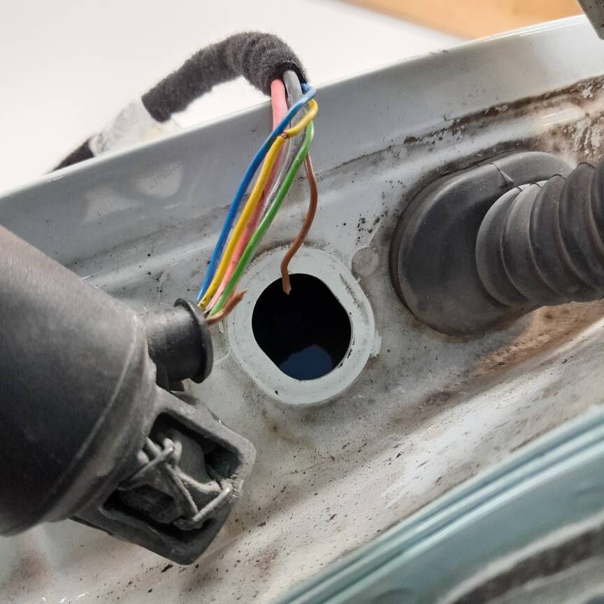 Alltså kabelpaketet som går från gasdämparen in i bilen. Vänster sida i mitt fall. Brun kabel var av. Lagade den och vips så fungerade luckan igen 🙏