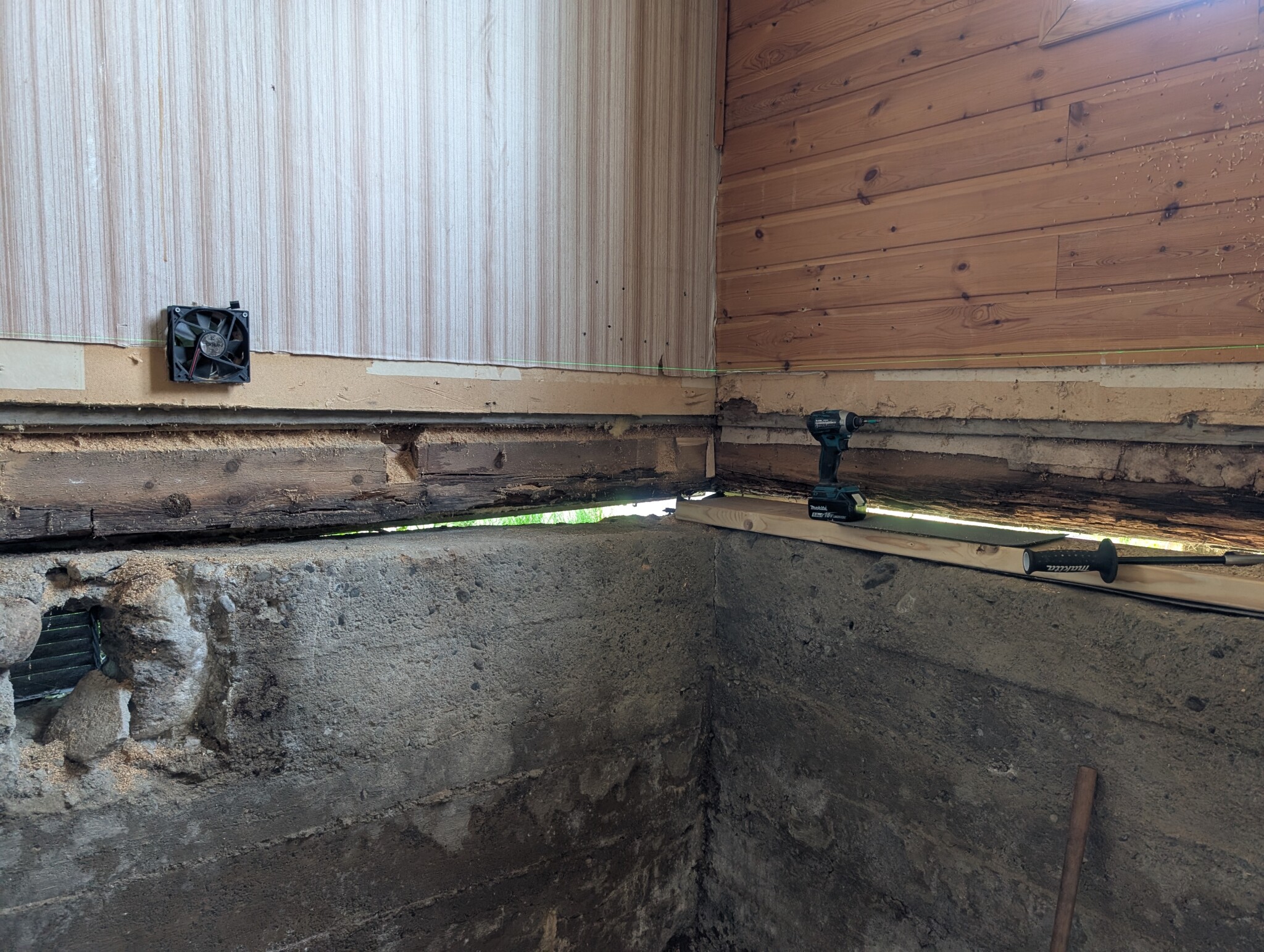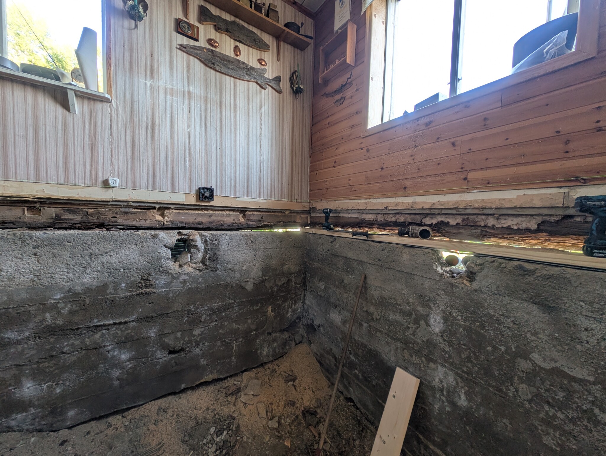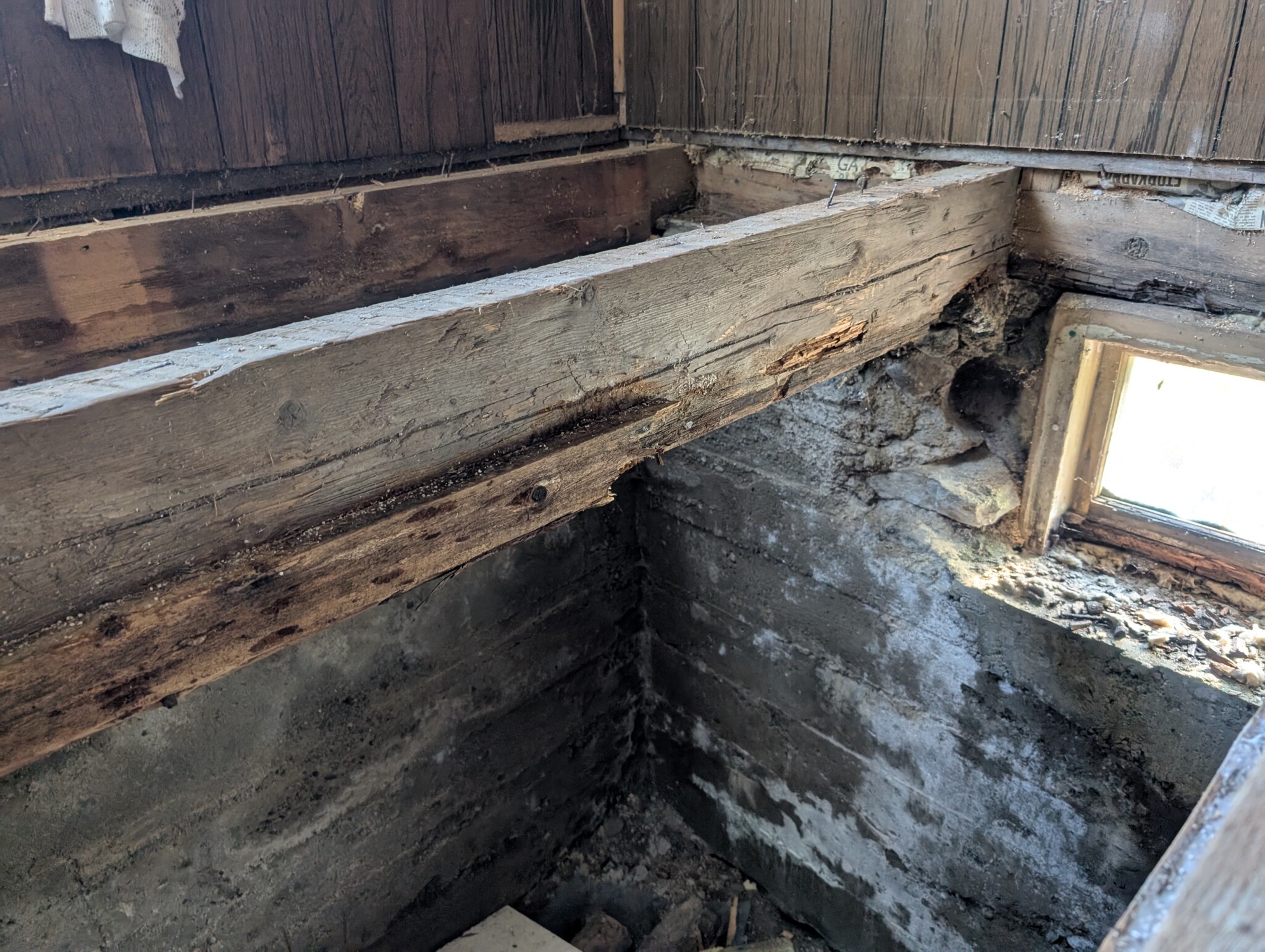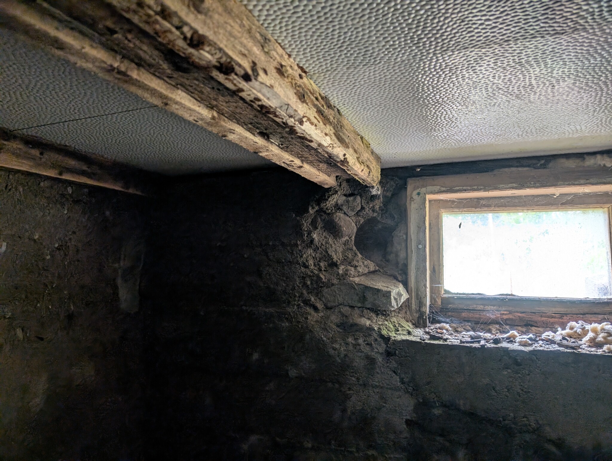 Då källaren är så pass kall så att den kan användas som kylskåp så är det också väldigt fuktigt. Det har gjort att bjälklaget och syllen med tiden har ruttnat.