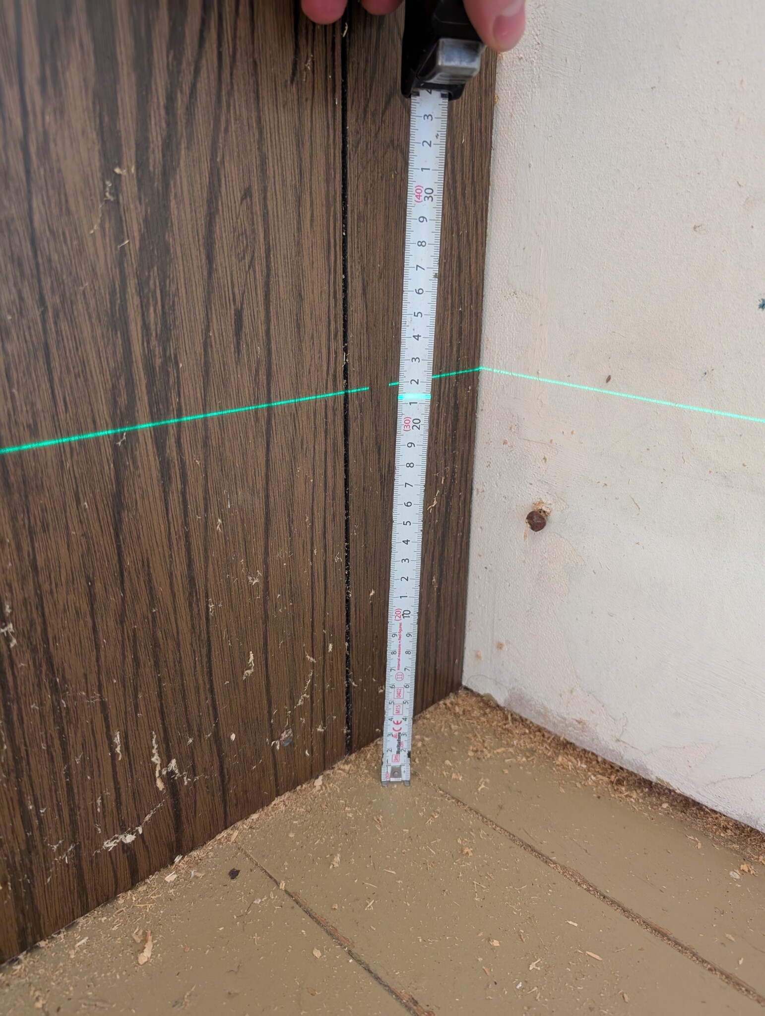 Lasern visar högsta och lägsta punkten i ett rum som är ca 4x4m.