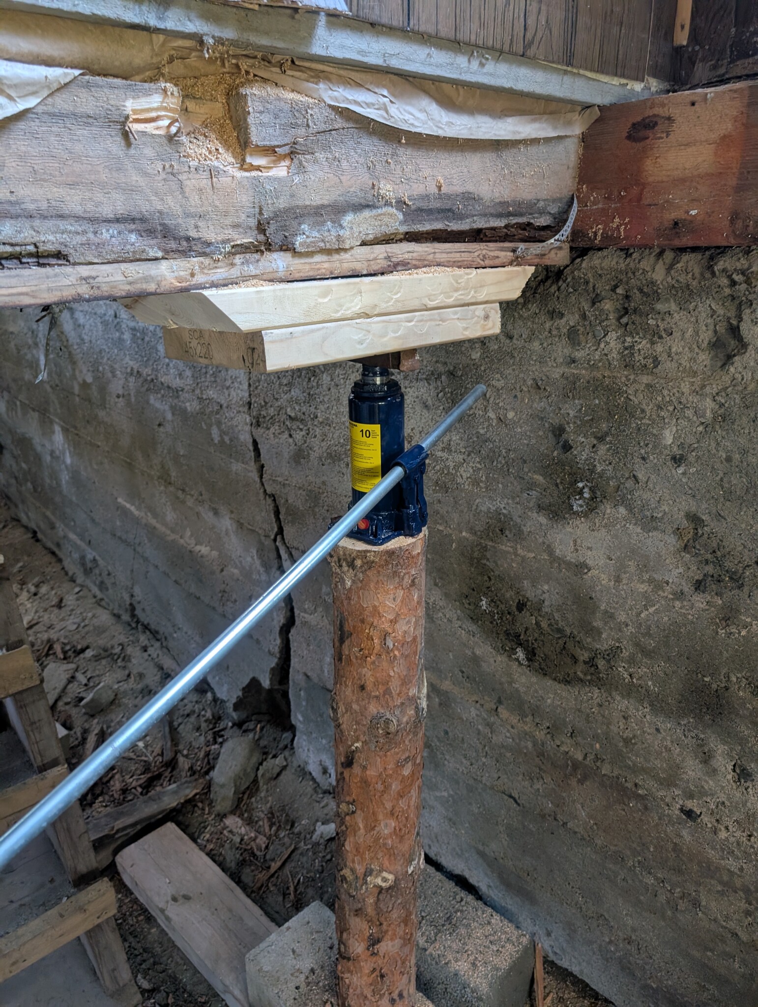 Tack för alla tips, nu ser jag en ljusning Det är ett gammalt boningshus med två våningar med en uppskattad bottenarea på 50-60m2. Räknar med att behöva kraftiga domkrafter. Tror du det räcker med 10t i hörnen?