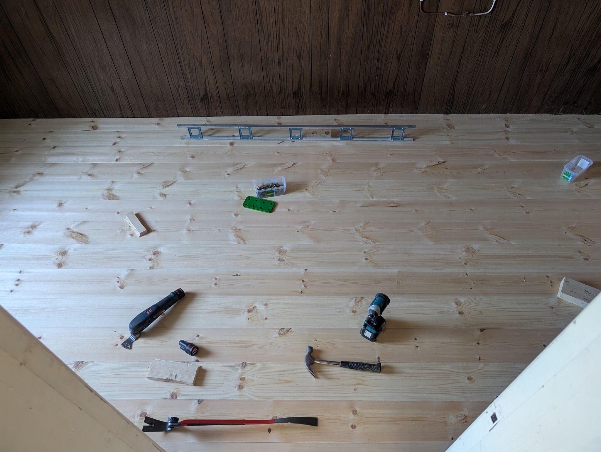 Imorgon hoppas vi få lyften färdiga och sätta nytt bjälklag.