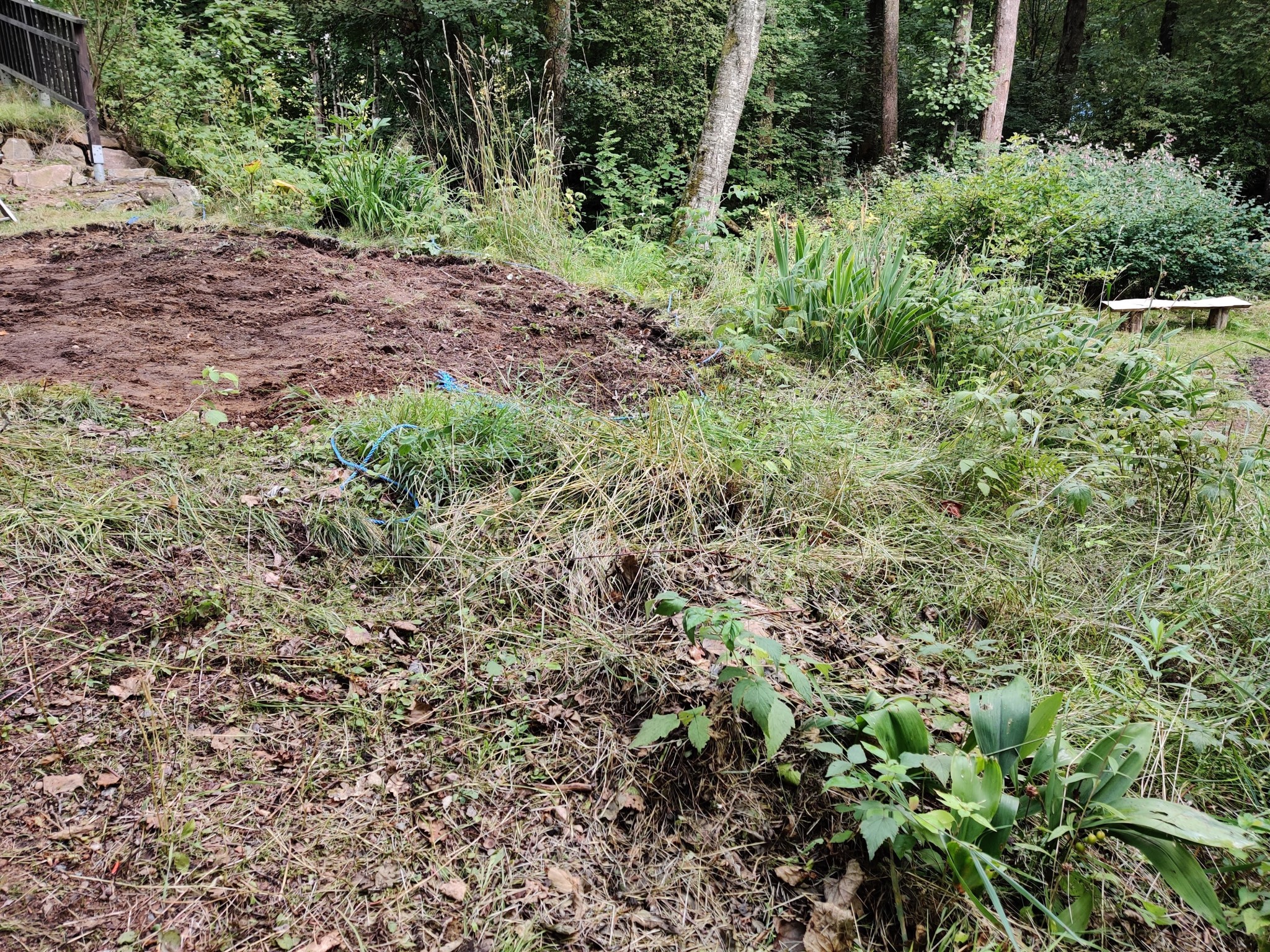 Håller på att gräva ut gräsmatta för att anlägga en uteplats av gatsten.