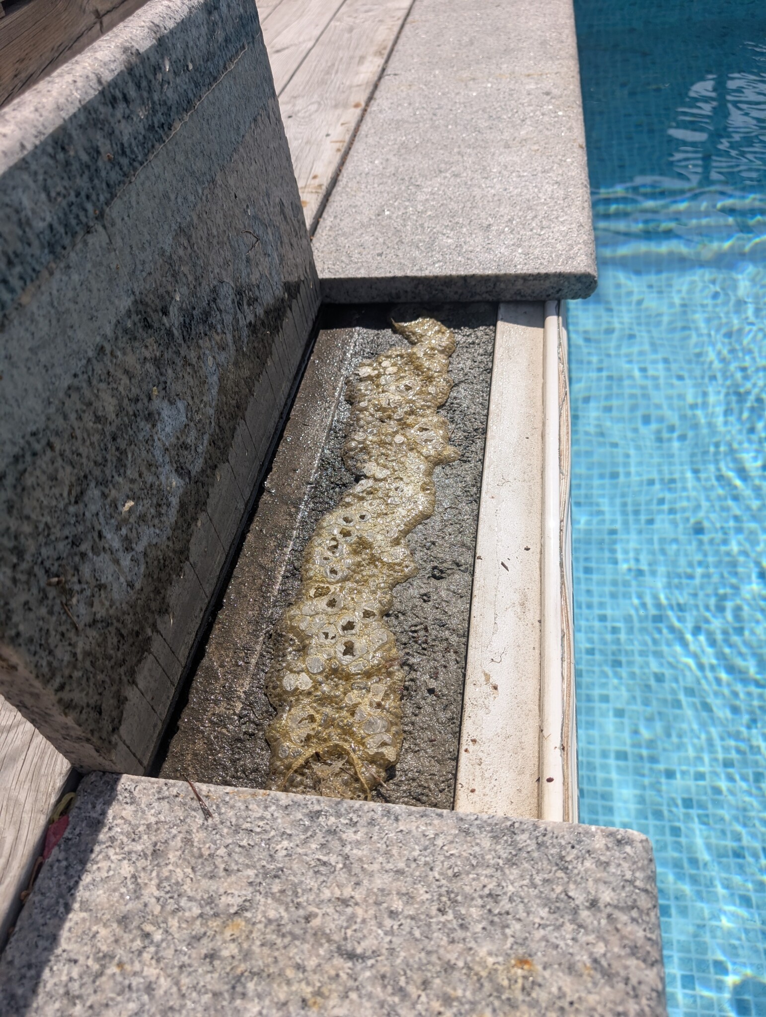 Alla granitsten runt poolen har lossnat så ett ypperligt tillfälle att göra om, snygga till och fixa....