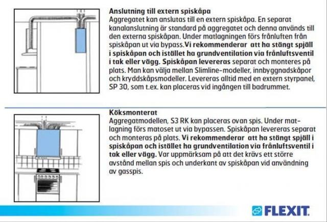 Smartare med frånluftsdon då det går igenom värmeväxlaren, tar man grundflödet i kökskåpan går det förbi värmeväxlaren och rakt ut.