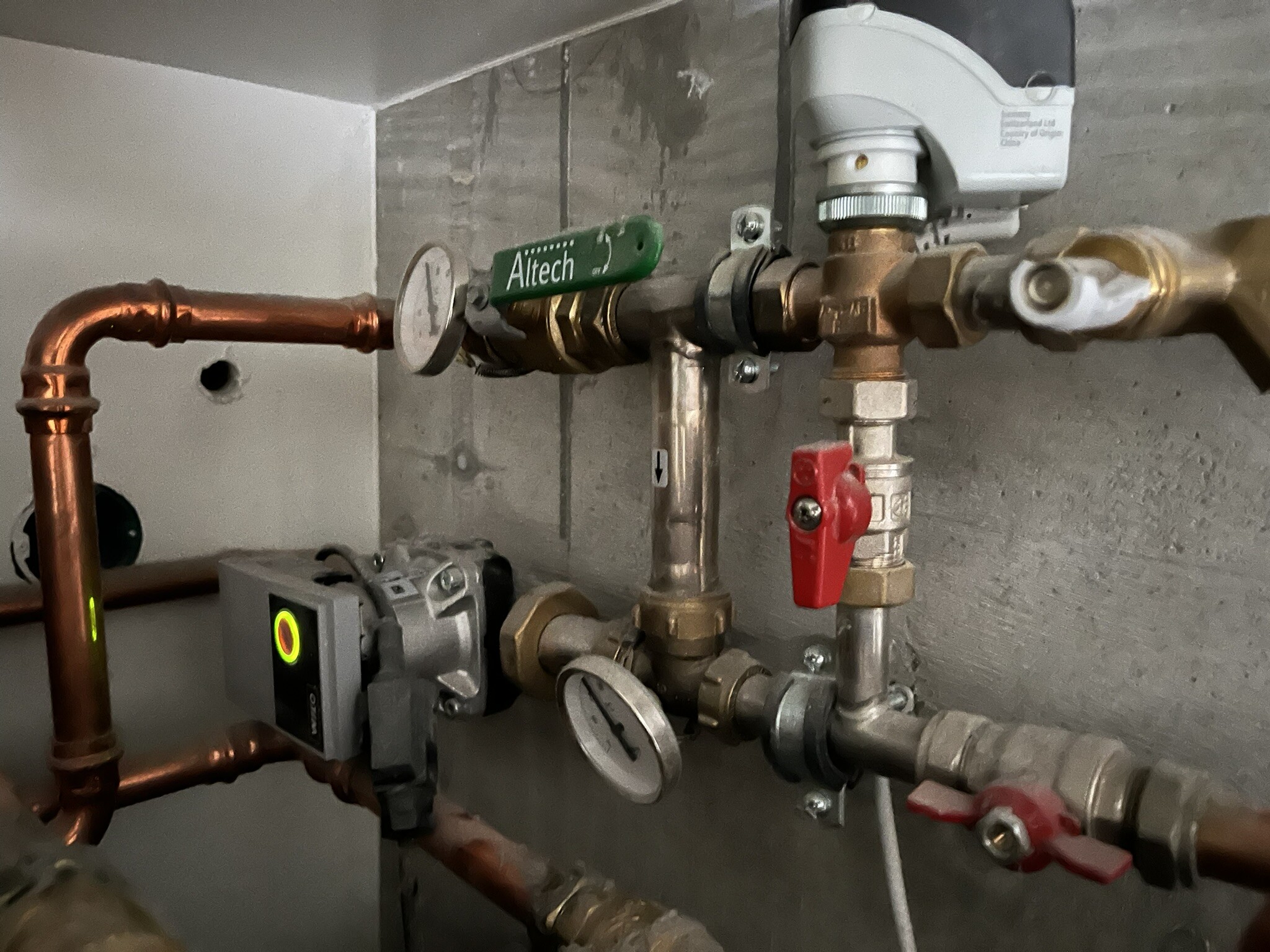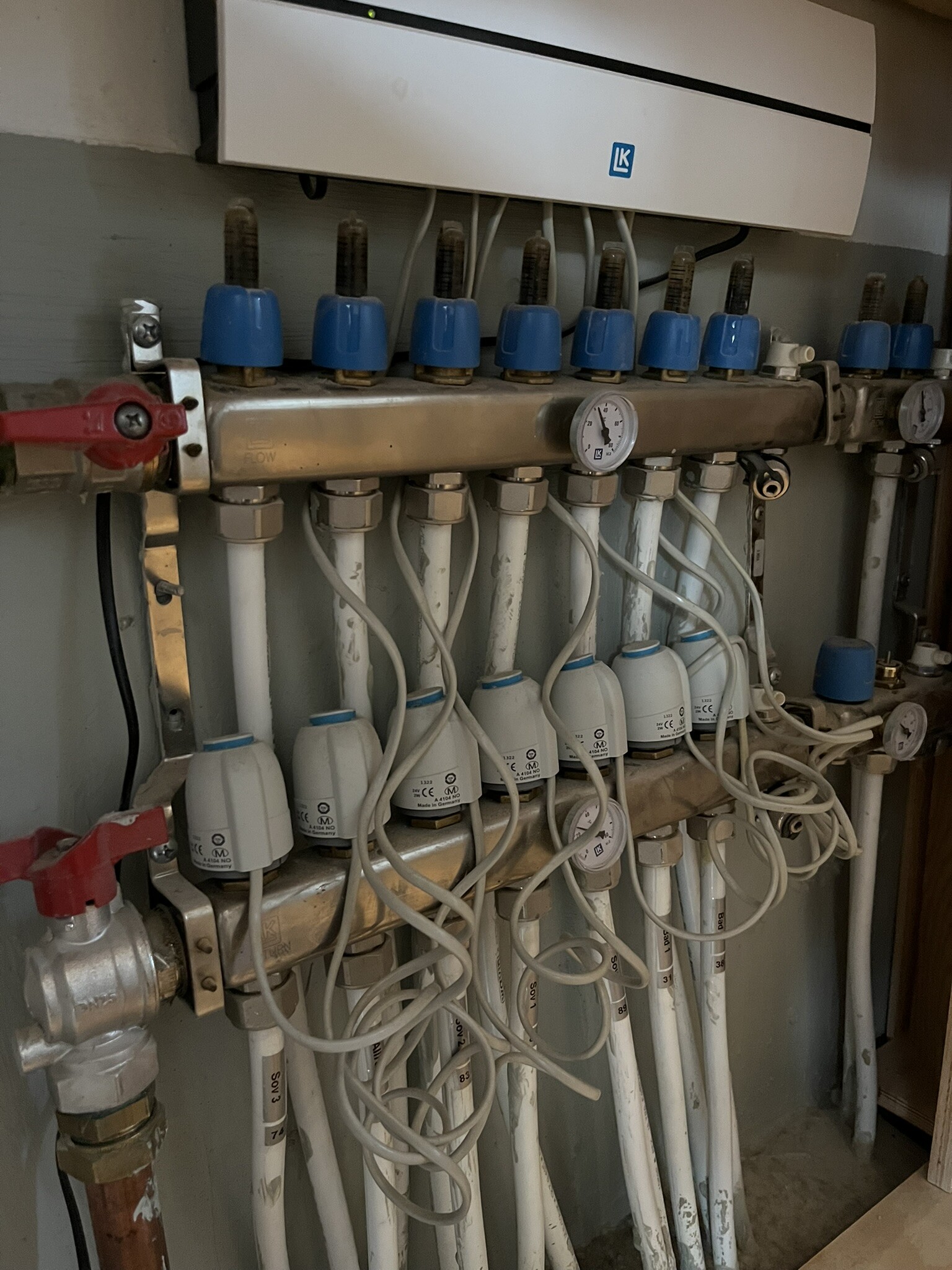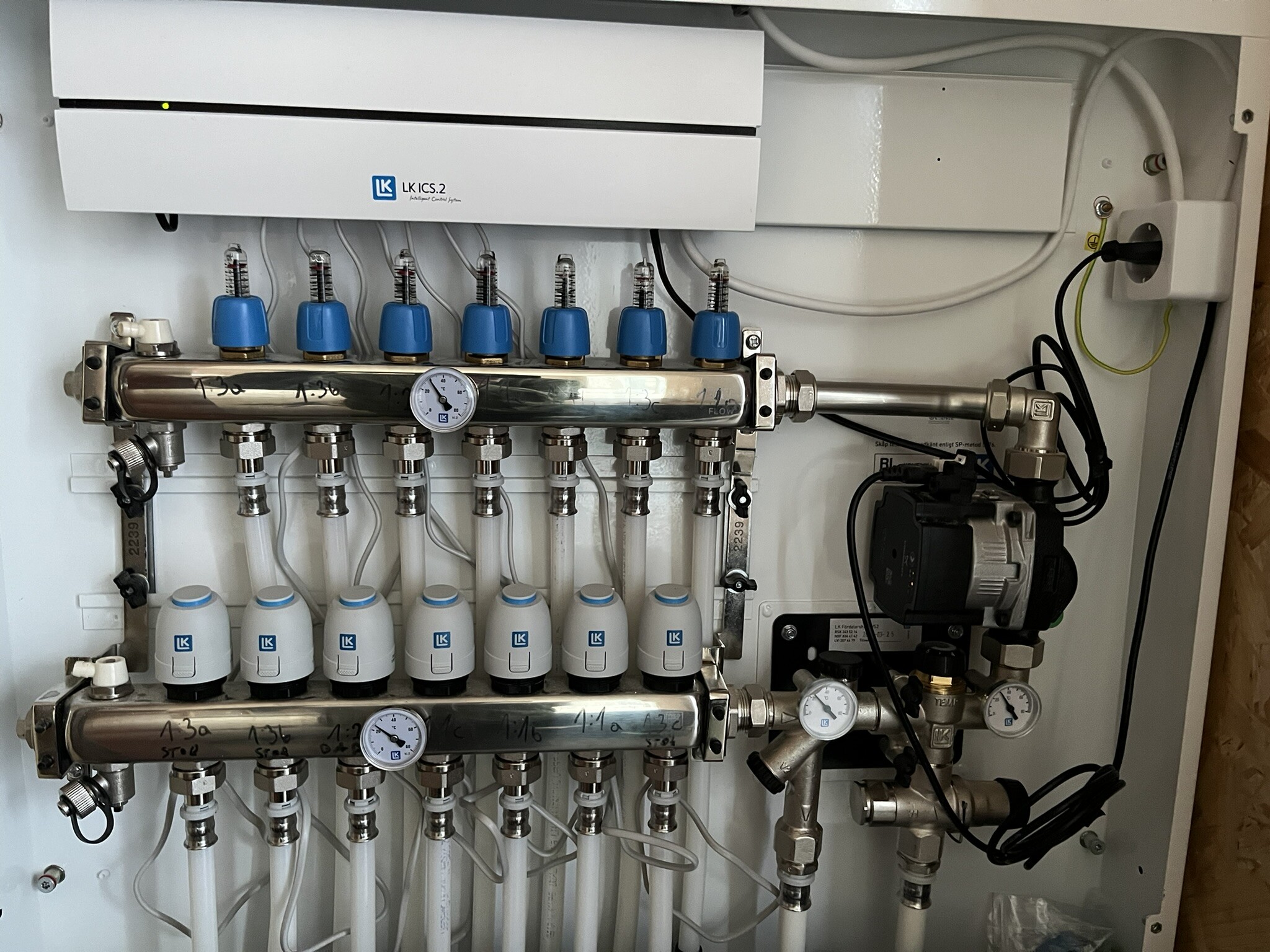 Det har kopplats in ytterligare en golvvärmefördelare med vidmonterad cirkulationspump som matar ca 100 kvm.
