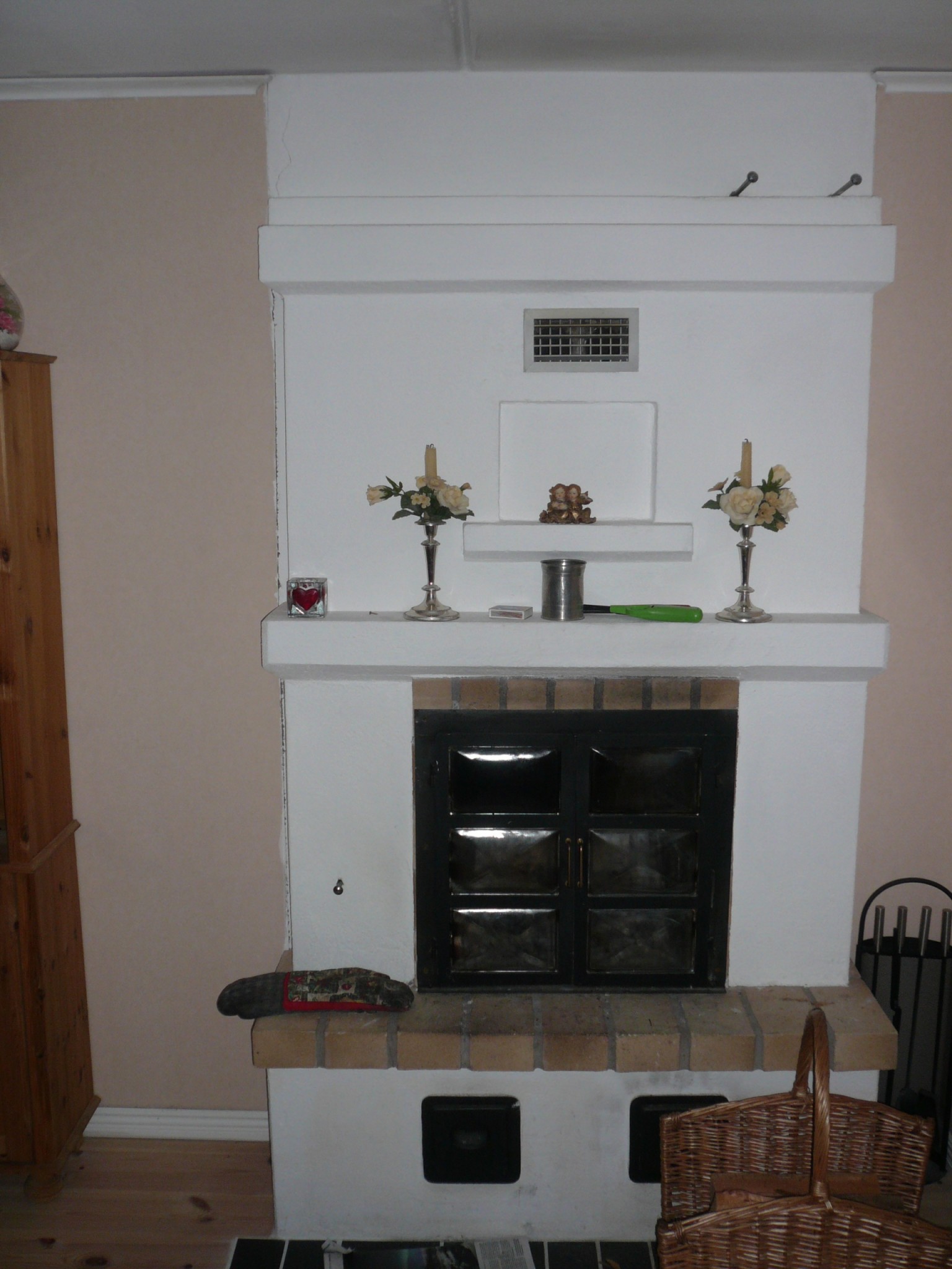 Det finns en uppmurad eldstad i gillestugan, det är väl en lite kakelugnsliknade variant vad jag förstår. Det finns en gigantisk murstock som vetter mot rummen bredvid. Jag har bott i huset i fem år, men är osäker på hur spjällen fungerar. Undrar om någon känner igen typen på bifogad bild, huset är från 1980. Spjället nere till vänster är ju inluft och det två uppe till höger är för rökgaserna. Om ena eller båda spjällen är öppna (utdragna) är det bra drag, men jag antar att ena är ett startspjäll. Märker ingen säker skillnad i drag eller värmeavgivning, så jag vet inte vilket som ska vara öppet vid tändning respektive när det börjat brinna bra. Tacksam svar!