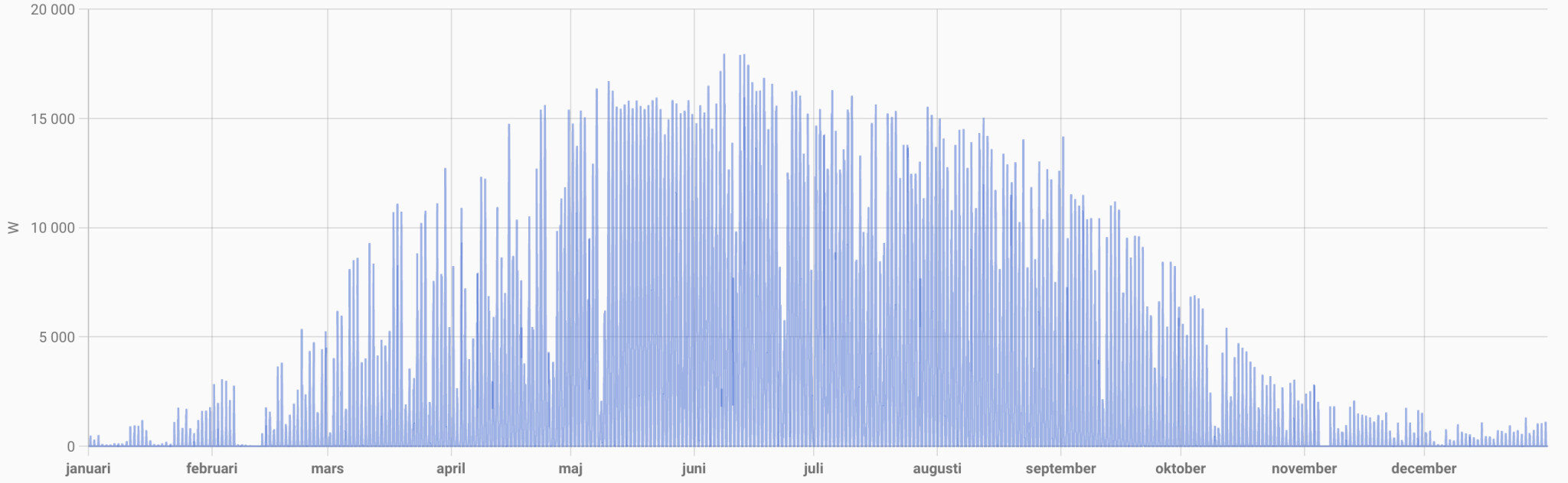 Det håller jag inte med om, det märks väldigt tydligt från andra halvan, eller åtminstone siste veckan av Februari. Nu framgår det inte av startinlögget var TS har sitt hus och hur stor anläggningen är men 30 paneler och kanske 430W blir ändå 13kW. Jag har SÅLT över 250kWh i Februari alla år utom 2021. Producerat är naturligtvis betydligt mer, jag har 17kW i en allt annat än optimal riktning och vinkel.Dowser4711 skrev: