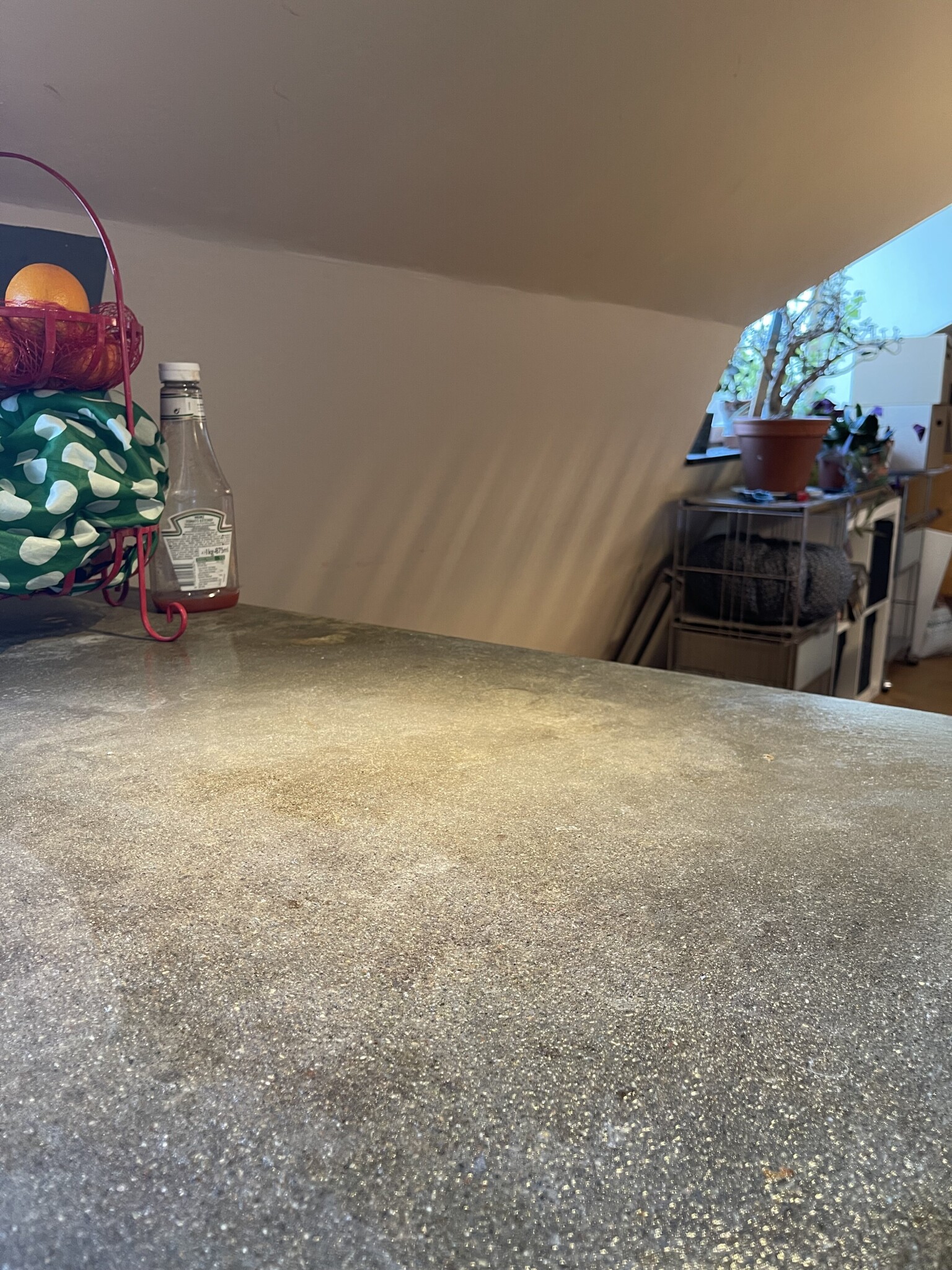 Nu är det mer än 10 år sedan jag gjöt betongbänkskivor till mitt kök. Från början var de fina, men med tiden har de blivit grova i ytan och svåra att hålla rent. På det mest utsatta ställena där de skrubbats och använts mest, känns det som grovt sandpapper. Det är varken särskilt praktiskt, snyggt eller hygieniskt. Inte kul att behöva dra fram rotborsten varje kväll 🙂.