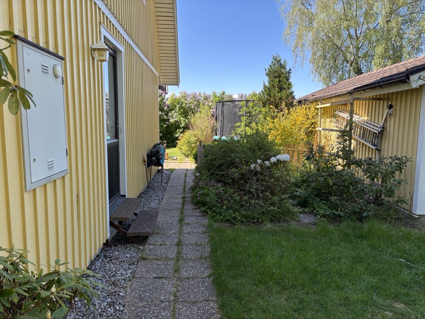 Vårt 1,5-plans hus från 1983 har separat garage där elen (1-fas) är dragen från husets elcentral, rör ner i krypgrunden, en bit i krypgrunden och sedan in i gult rör till garaget och upp genom plattan. På bilden med fasader ser ni Ellevios elskåp och vattenutkastaren längre bort (där slangen till garaget börjar nere i marken). Jag har grävt en grop (ca 30 cm djup) utanför garaget närmast där slang kommer upp ur plattan utan att hitta något rör.