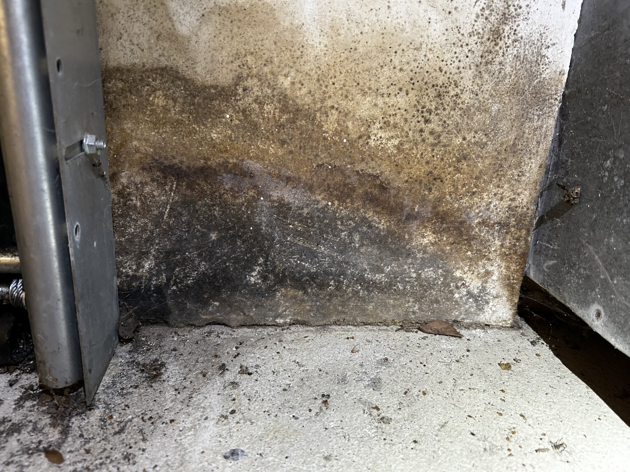 Ser lite tveksamt ut även i hörnet på vänster sida om porten. Kanske läcker det in vatten även där, och isf kanske hela bygget är av tveksamt utförande?