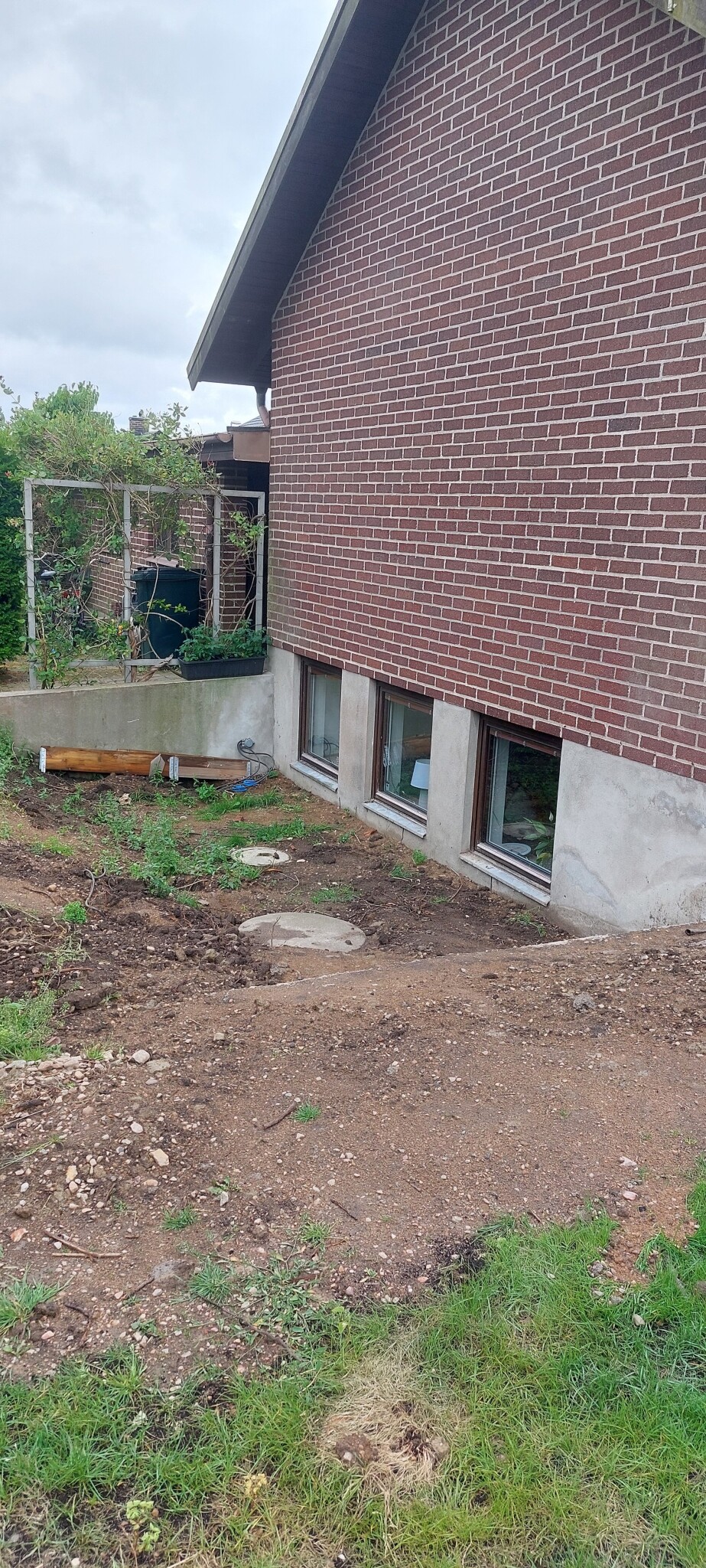 Vi har nyligen flyttat in i en villa som har en sluttning mot gillestugan som vi behöver göra något åt. Huset blev omdränerat för några månader sedan.