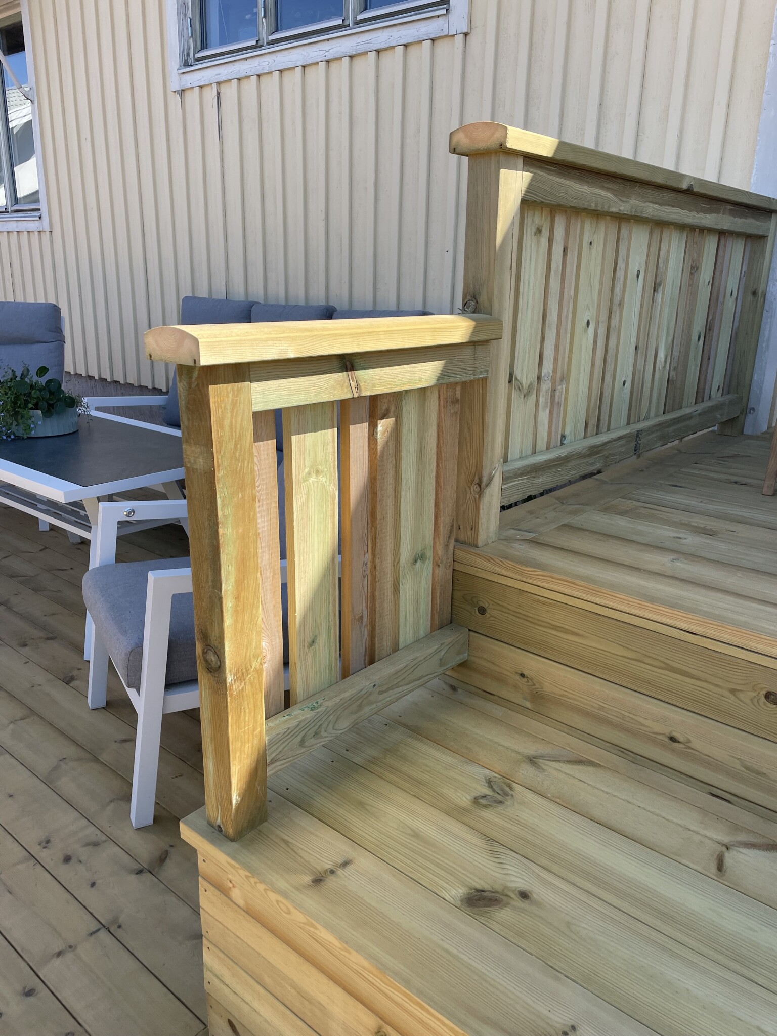 Syftet med inlägget är inte att klanka ner på snickaren utan få svar på ett par frågor om sånt som jag vill förbättra i efterhand. Jag är väldigt nöjd med snickarna, de gjorde ett asbra jobb med altanen. Tror däremot kunden var lite jobbig 😆T Thomas_Blekinge skrev:Handledarna brukar vara kupade för vattenavrinningens skull.