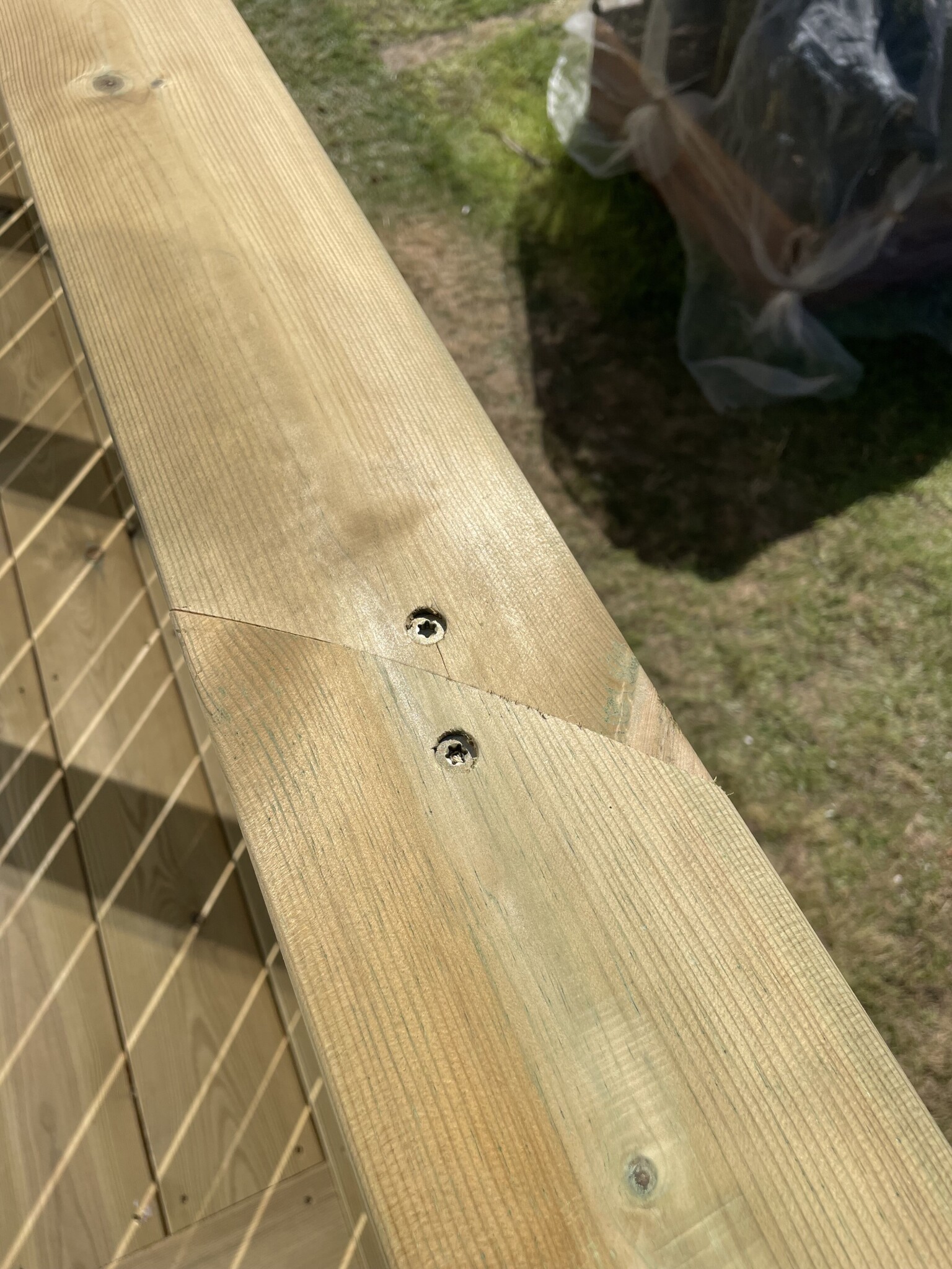 Och slutligen, vi ska visserligen måla räcket nästa (eller nästnästa) år men ska man verkligen skruva ovansidan? Är det lätt att spackla snyggt sen?