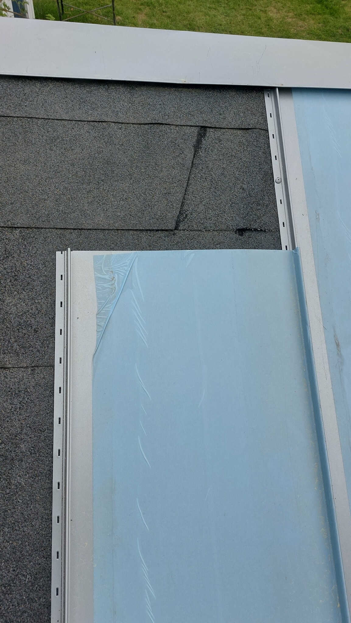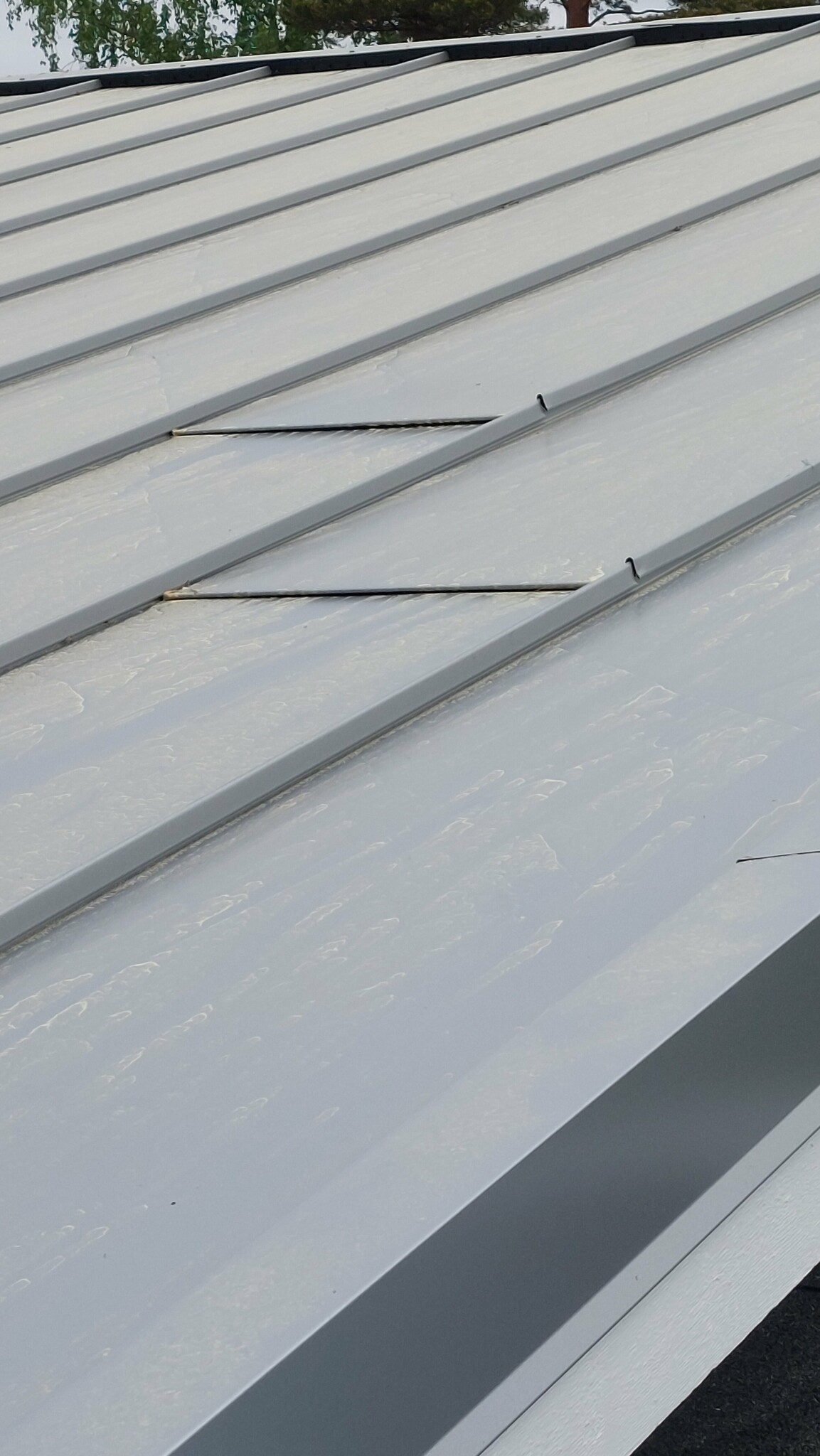 Hur gör man för att på bästa och snyggaste sätt skarva klicktak? Jag lägger på ett uthus. På det stora taket är det redan gjort på ett snyggt sätt.