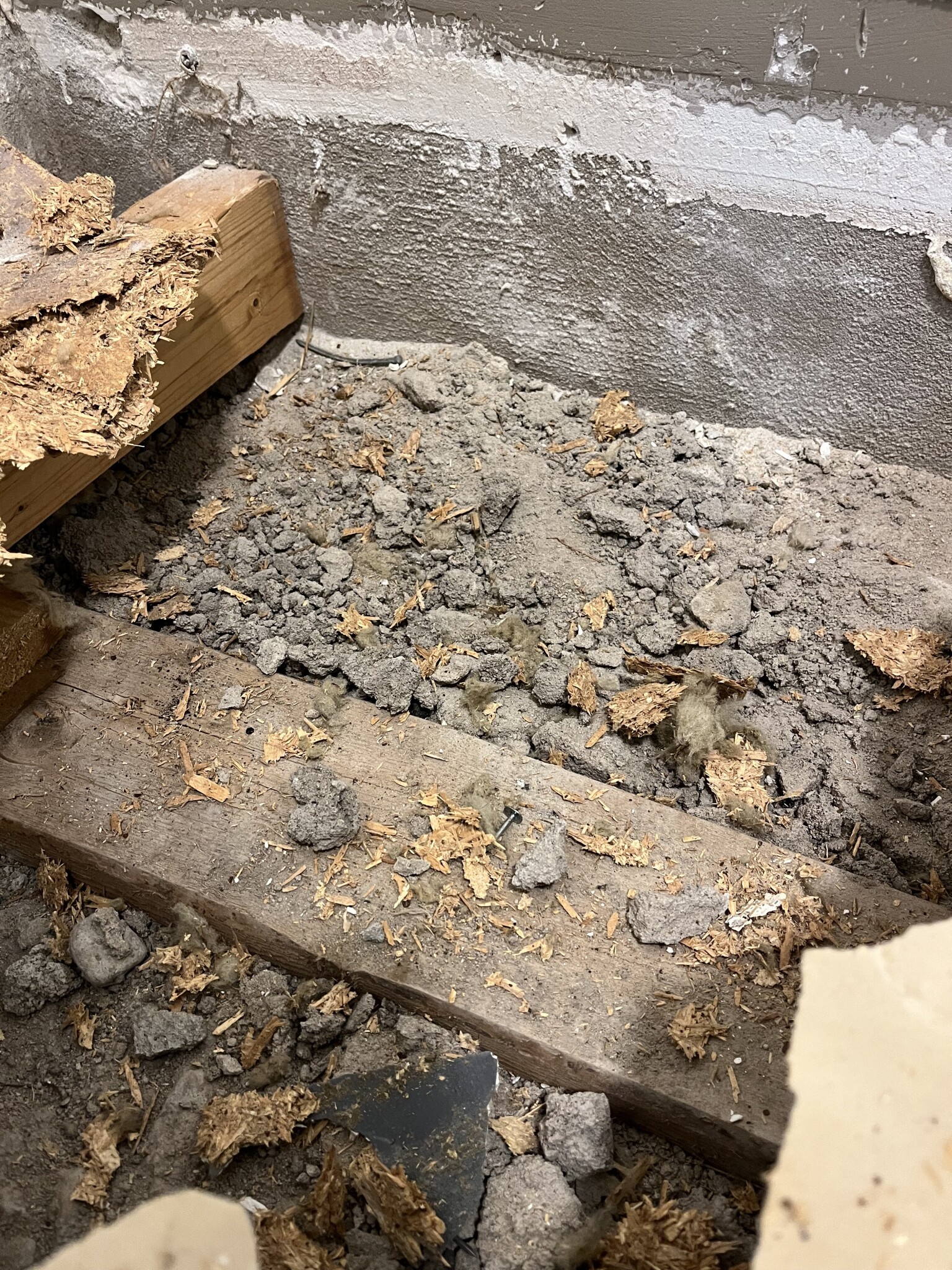 Rev bort golvet och finner där fastgjutna bjälkar i bottenplattan. Vad gör man bäst här? Finns golv i två andra källarrum men de luktar inte. Resten av rummen i källaren har vanligt betonggolv. Rådgiv mig!
