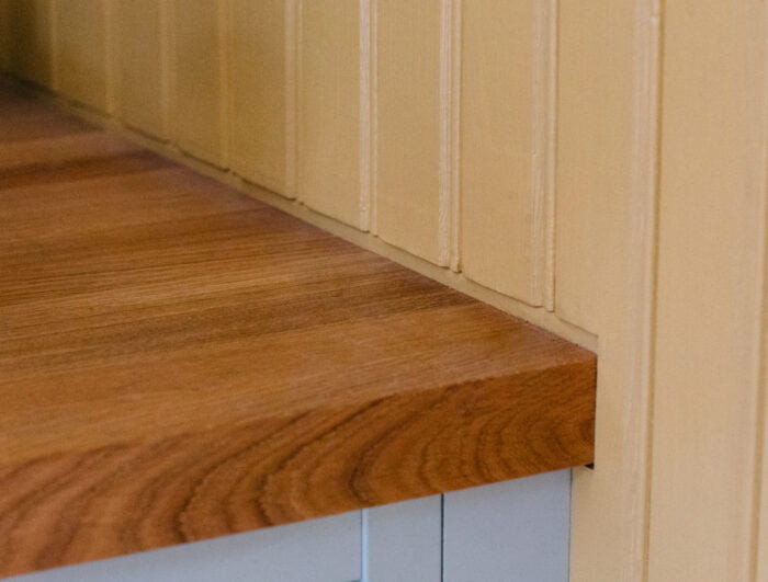 Vi ska ha pärlspont som stänkskydd i köket. Nu till frågan; hur har Ni som också har detta gjort med mötet av pärlsponten och bänkskivan/bakkantslisten? Så det blir snyggt? Eller har Ni satt panelen först, bakom hela köket så att säga?