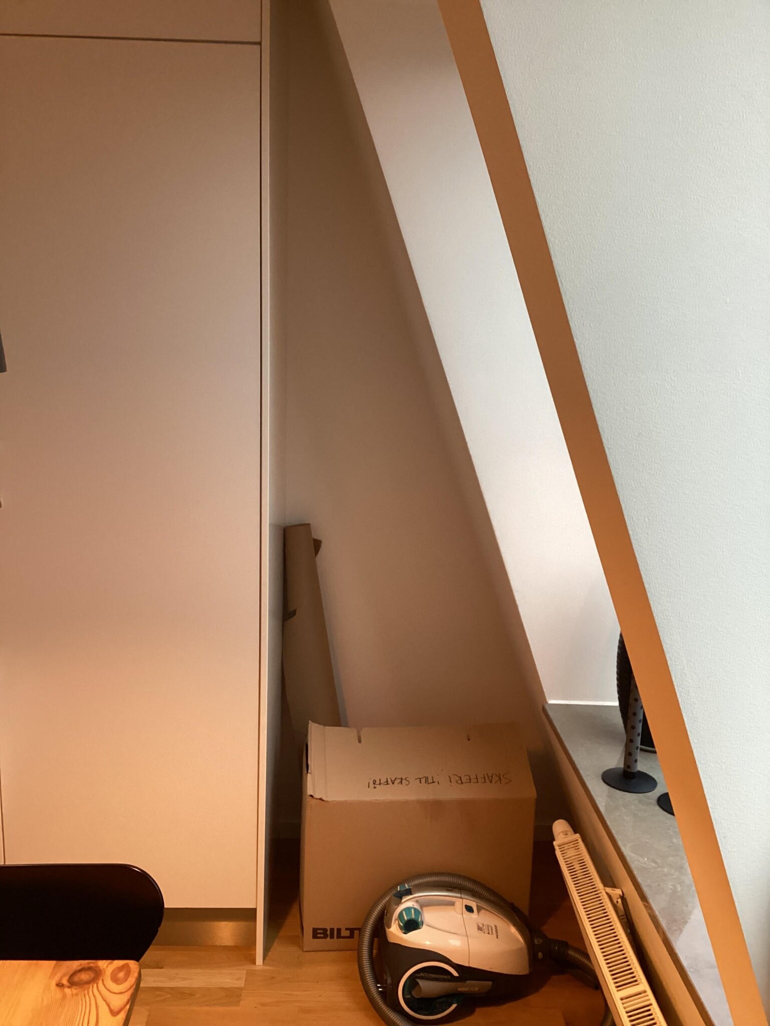 Vi har en trekantigt utrymme i köket mot ytterväggen som är sned.