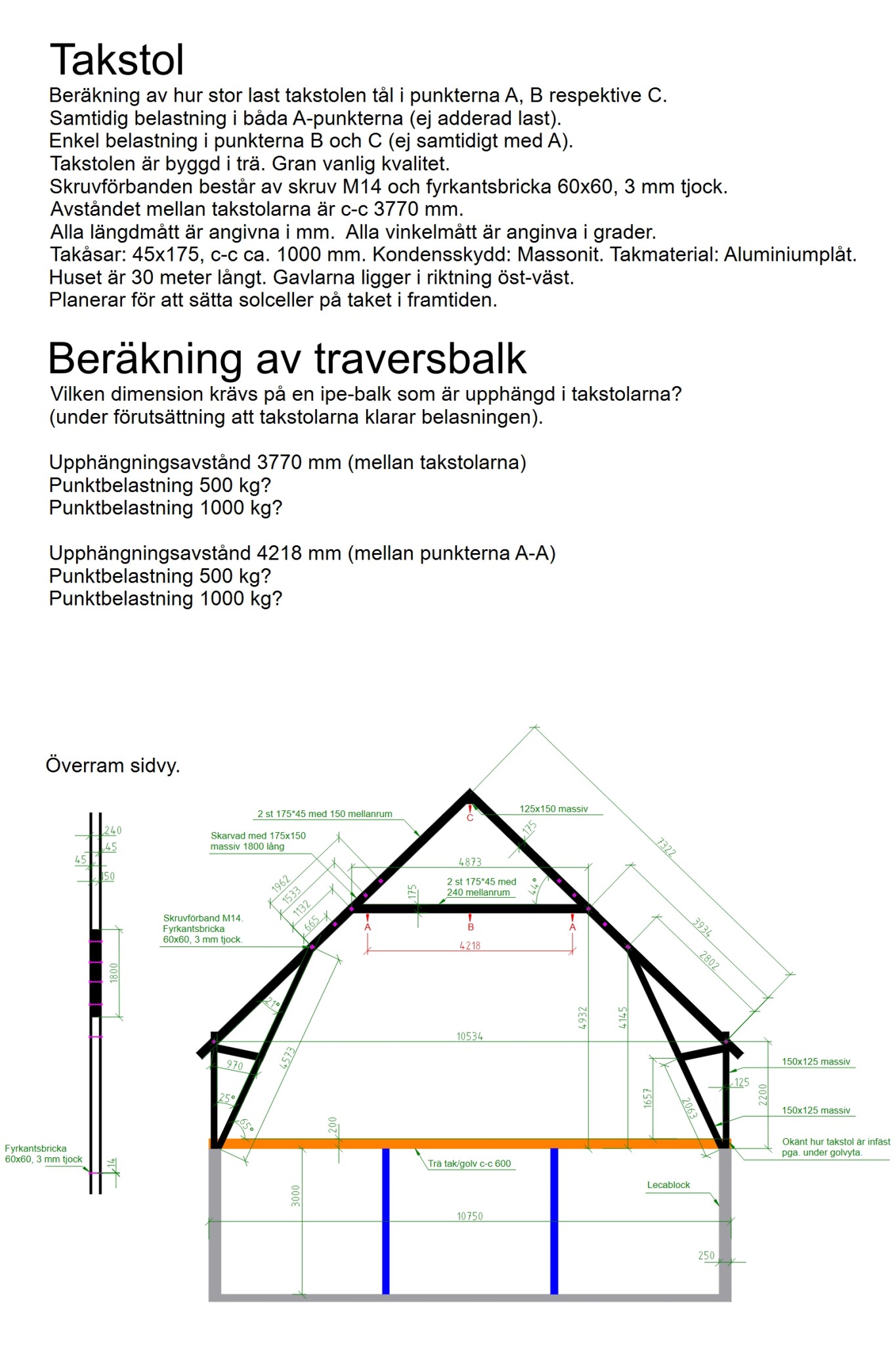 Jag har en idé om att sätta upp en travers i min lada. Jag behöver en hållfasthetsberäkning av takstolen för att se hur mycket last den tål.