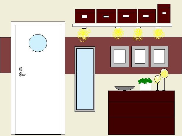 Jag skulle ha målat en brun fondvägg vid ytterdörrsväggen, sedan målat en bred brun rand runt hallen.