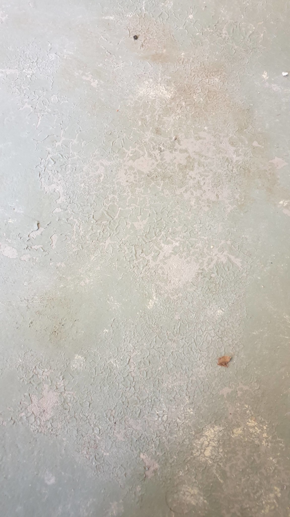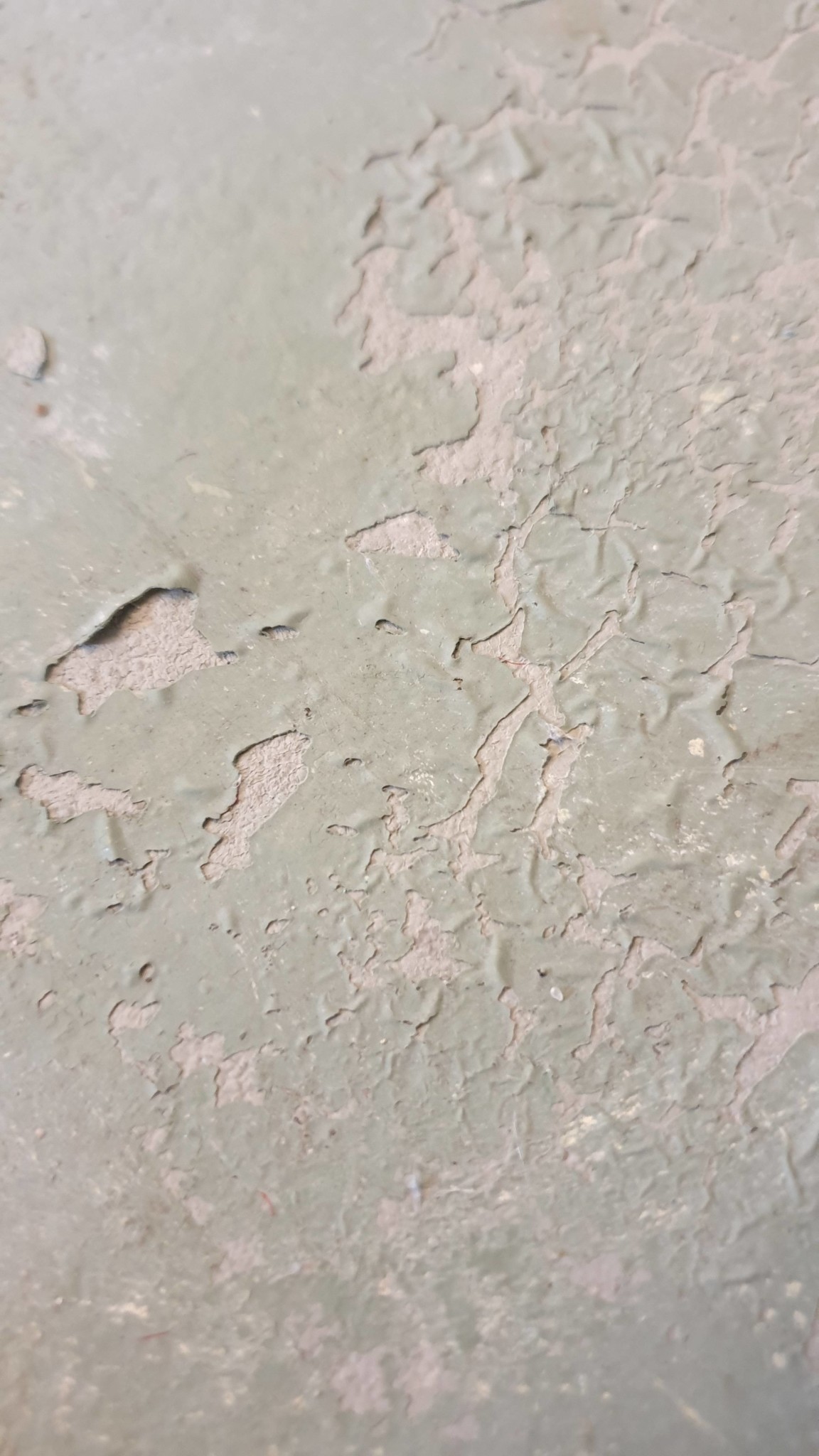 Bifogar bilder på ett ställe där färgen på golvet har släppt. Detta släpp beror på att jag råkade spilla färgborttagningsmedel på golvet när jag höll på att ta bort plastfärg från väggarna. Jag tänker att en bild kanske hjälper att identifiera vad det är för färg jag har.
