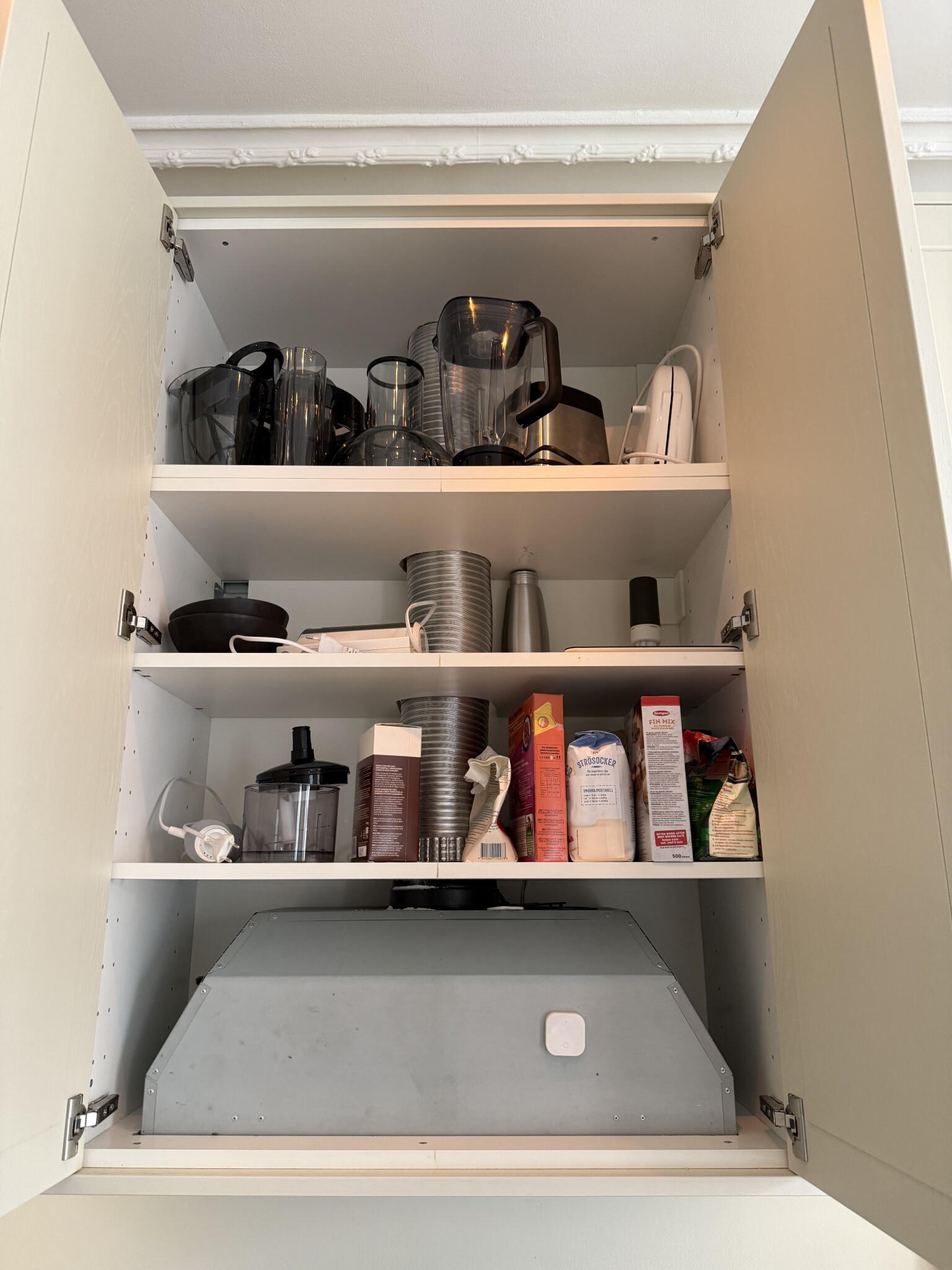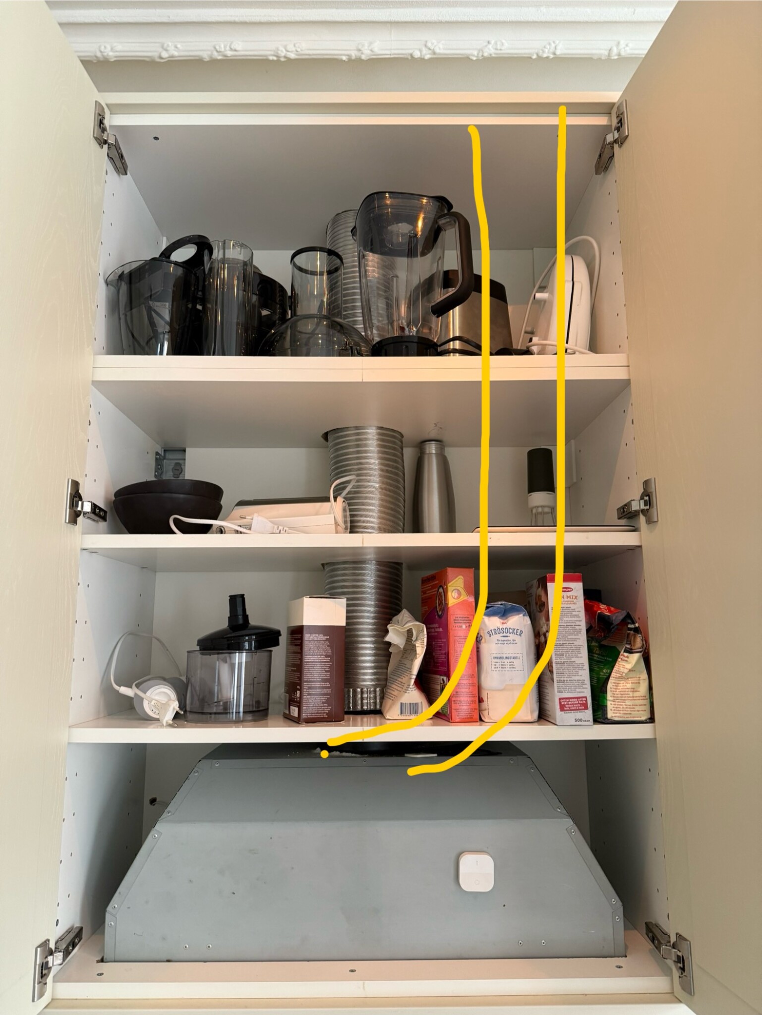 Vi skulle vilja få plats med en micro på nedersta hyllan ovanför vår inbyggda köksfläkt. Idag så sticker röret som leder ut allt os från köksfläkten ut, så en micro får inte plats. Vi har funderat på om man kan leda om röret så att det går åt höger eller vänster, men blir vinkeln för snäv då röret som sagt måste vara tillräckligt mycket åt höger eller vänster för att få plats med micron på den nedersta hyllan. Ser ni någon bra lösning på detta? Har även letat efter inbyggnadsfläktar som har röret på höger eller vänster sida från början, men utan någon lycka.