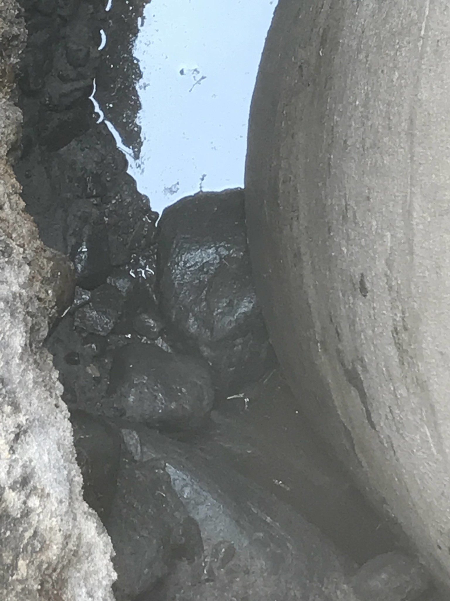 6) efter 7 meter kom berg. Där tog det stopp. Hällde i isgrus så jag fyllde första 40 cm av sumpröret med det. Det är grusfilter då ändan av röret är ju öppet.