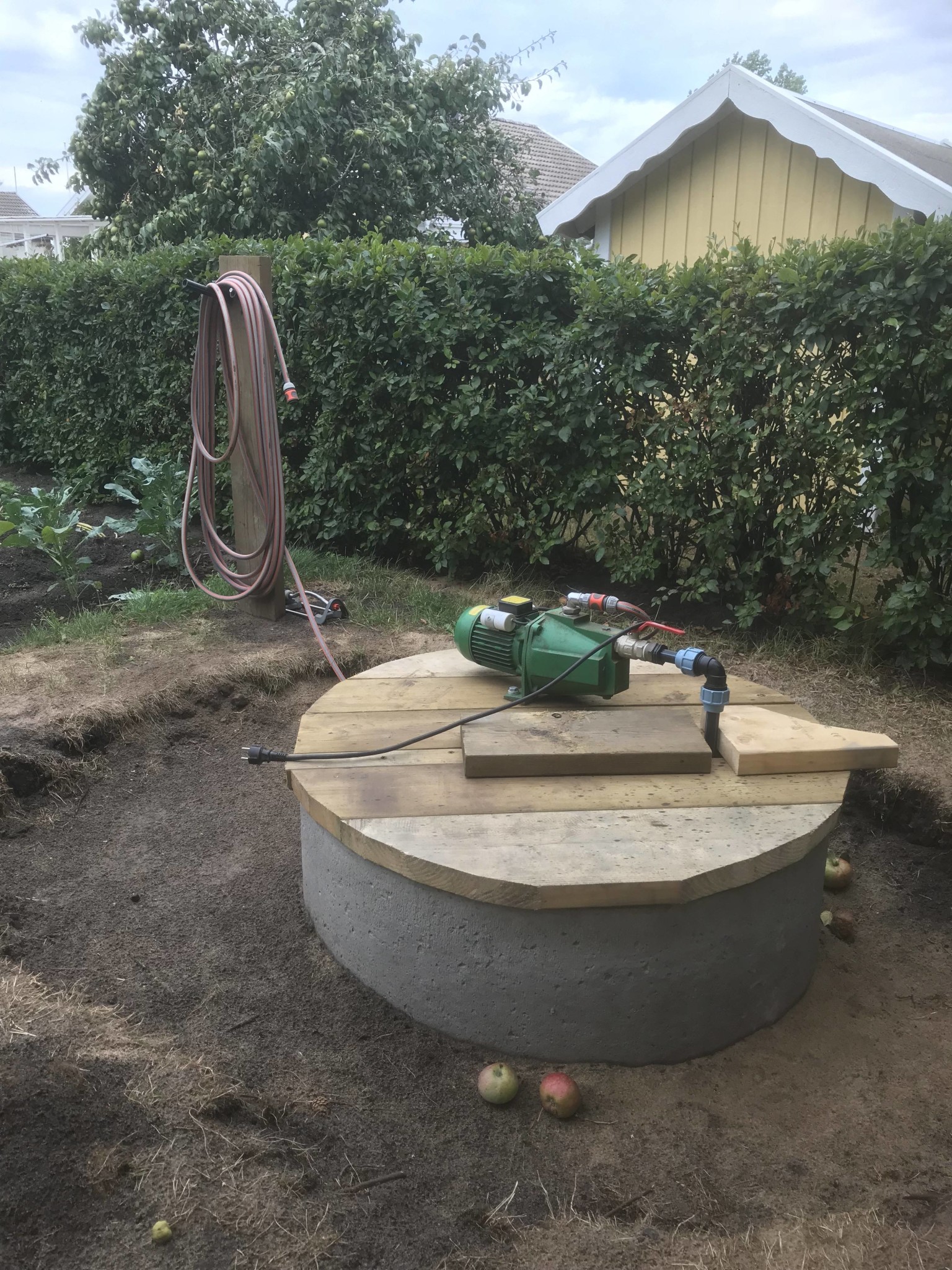 Jag gjorde en egen bevattningsbrunn på det här sättet. Kan plocka ut +10m3 per timme.