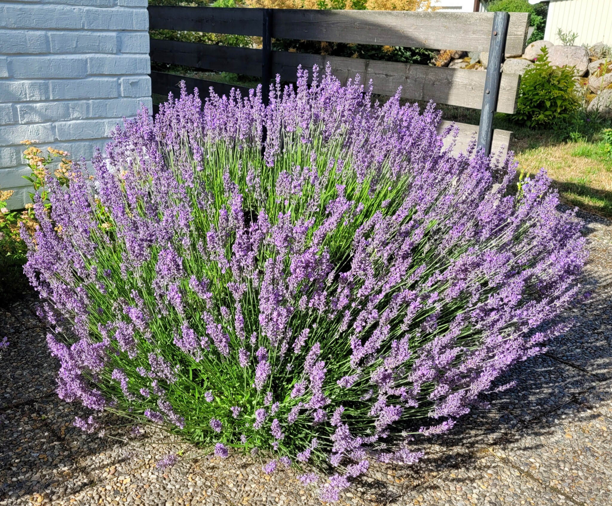 Lite mera jag borde göra, ta bort den självsådda lavendel mellan plattorna. Men där växter trivs så hittar de egna växtsätt, stammen kan bara vara några millimeter för att kunna pressa upp sig men blir istället bred. Har fyra sådan här hobbar där den letat sig fram med frösådd.