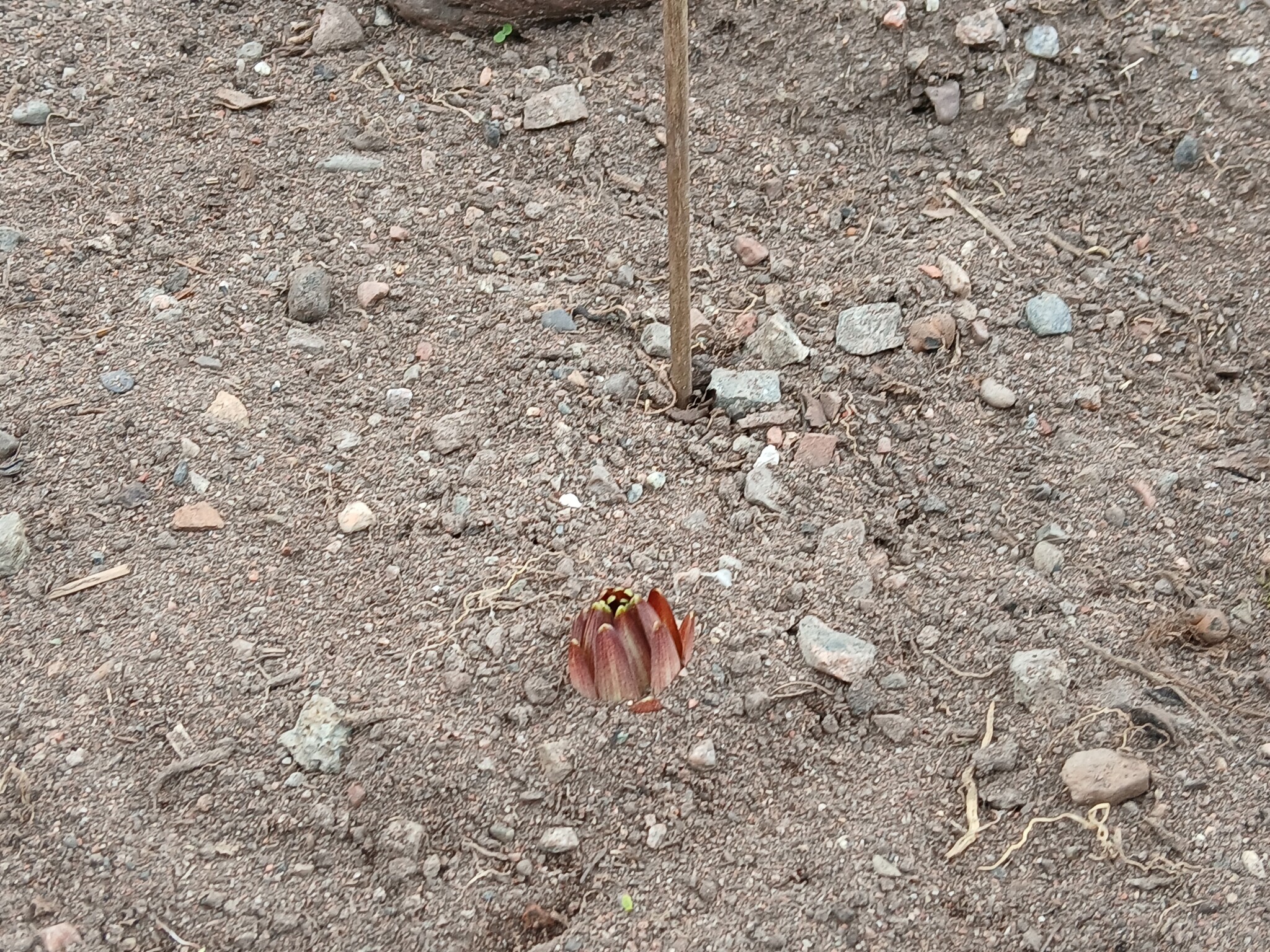 Här är början på knölen som jag hittade när jag grävde 😀 Kan det vara krollilja eller kanske rentav en kronärtskocka? Ingen aning vad det kan vara, så det ska bli spännande 👌🌸 Hittade en till likadan 'knopp', fast på en annan plats i rabatten, när jag var ut o dokumenterade vad som hänt senaste veckan 😀N Nina E 82 skrev: