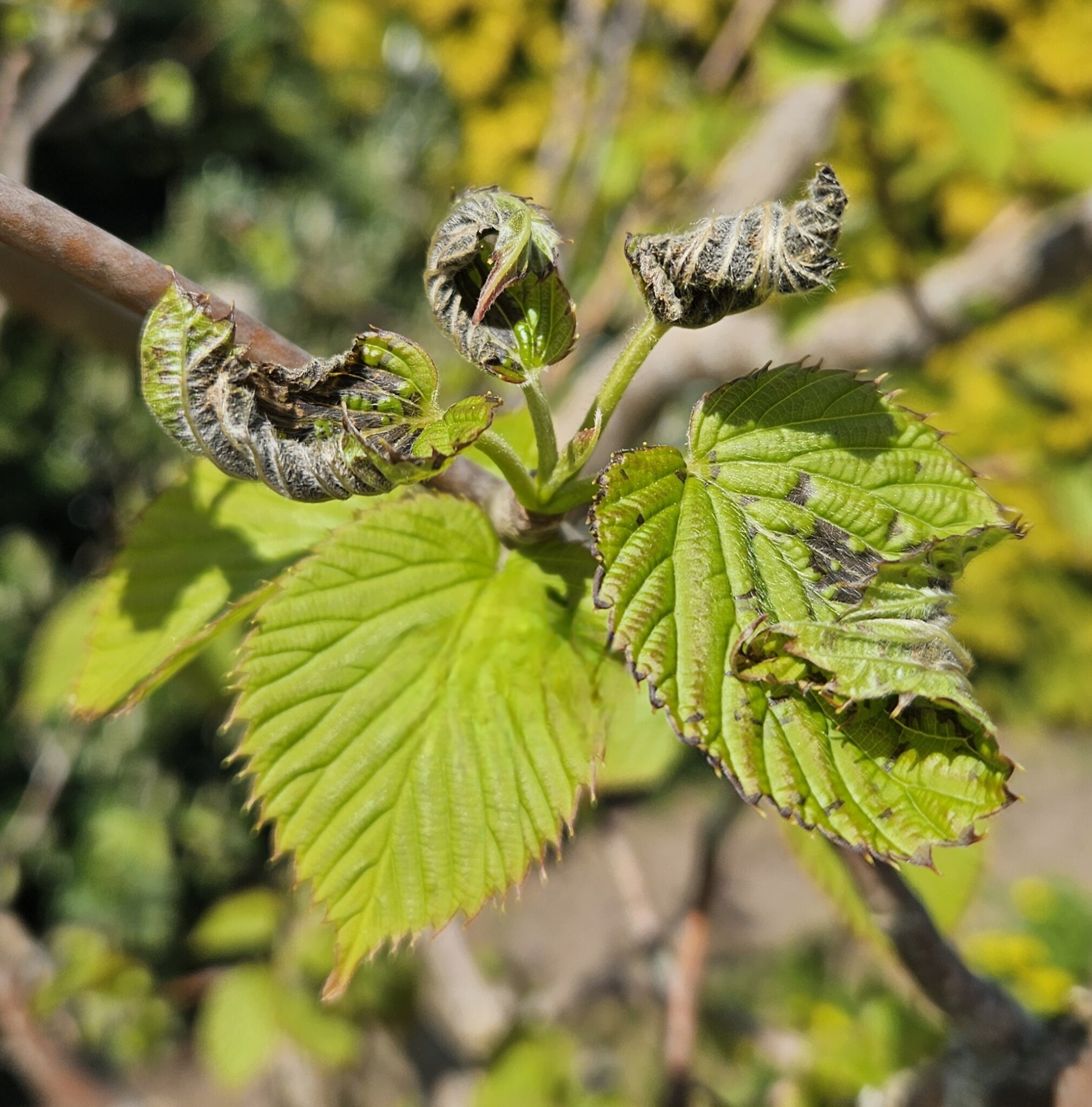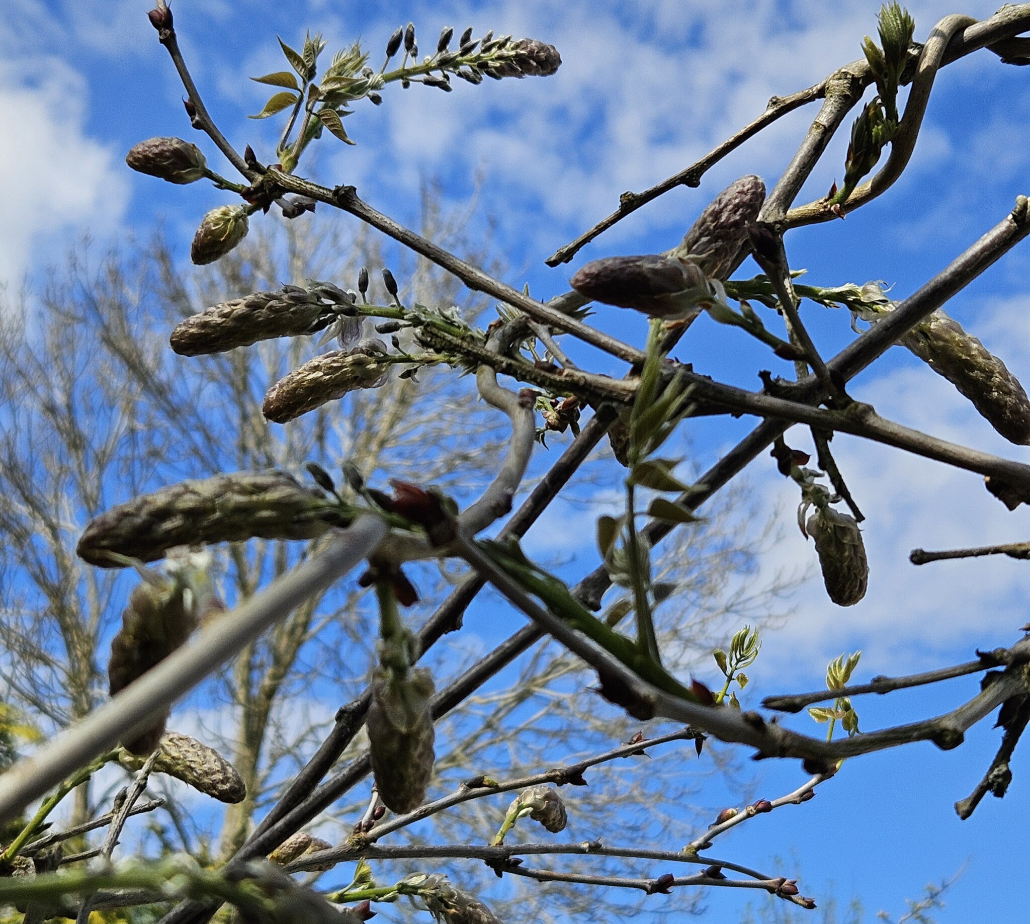 Just nu lugnt, tyvärr frös en del av de nyutslagna löven på Näsduksträdet vid senaste frostnatten, osäkert om det blir några blommor.