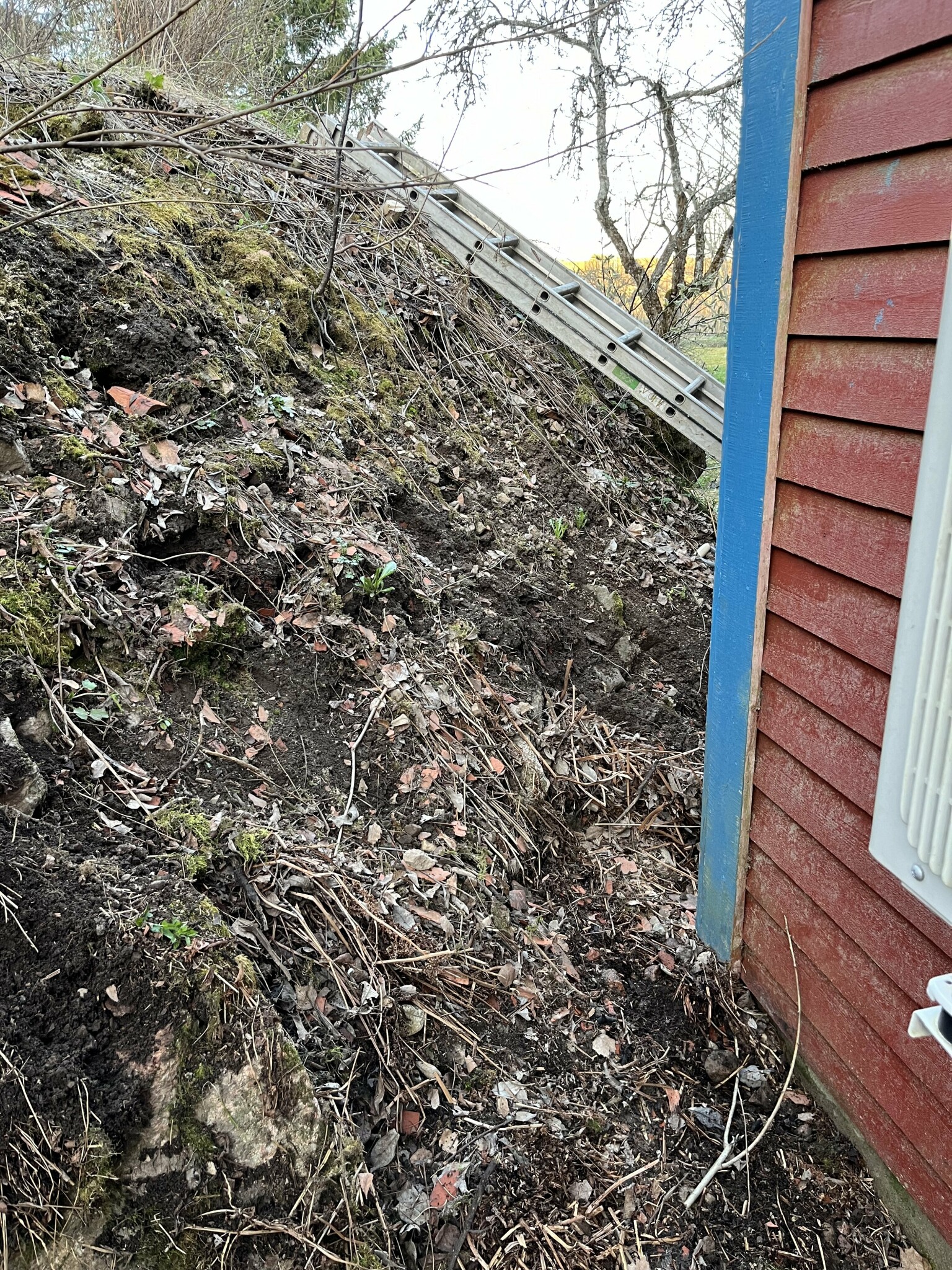 Vi har precis köpt en stuga och haft besiktning där man rekommenderar att gräva ut runt huset så att det inte ligger massa bråte mot fasaden så att det blir fukt.