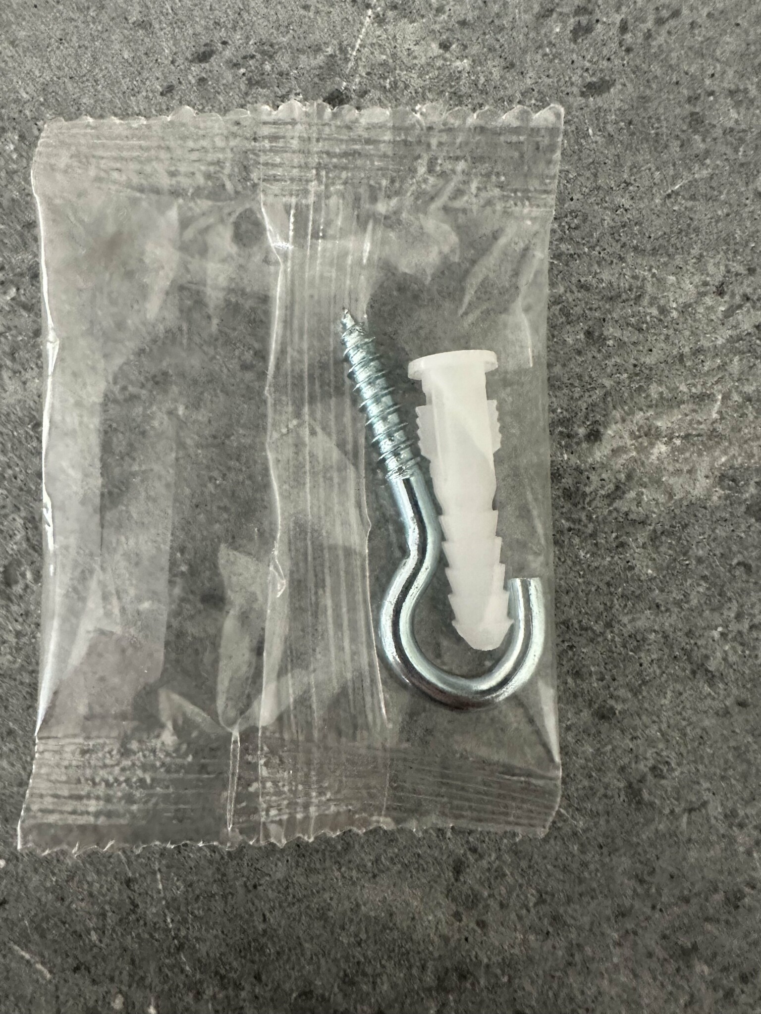 Som ni ser så finns ingen krok idag att hänga/fästa lampan i. Däremot följde det med en krok. Problemet är att koppen inte är så mycket större än vad "hålet" är idag. Är den bästa lösningen ändå att skruva upp kroken i närheten av "hålet" eller finns det någon här som sitter på en ännu bättre lösning? Något jag missar?