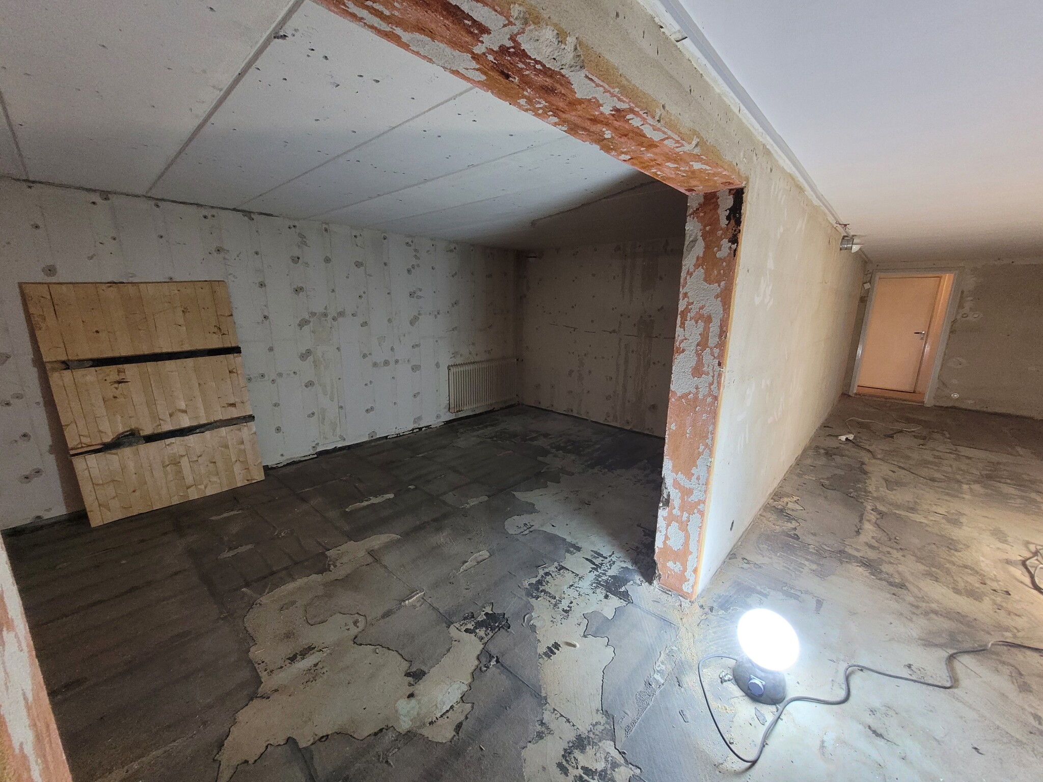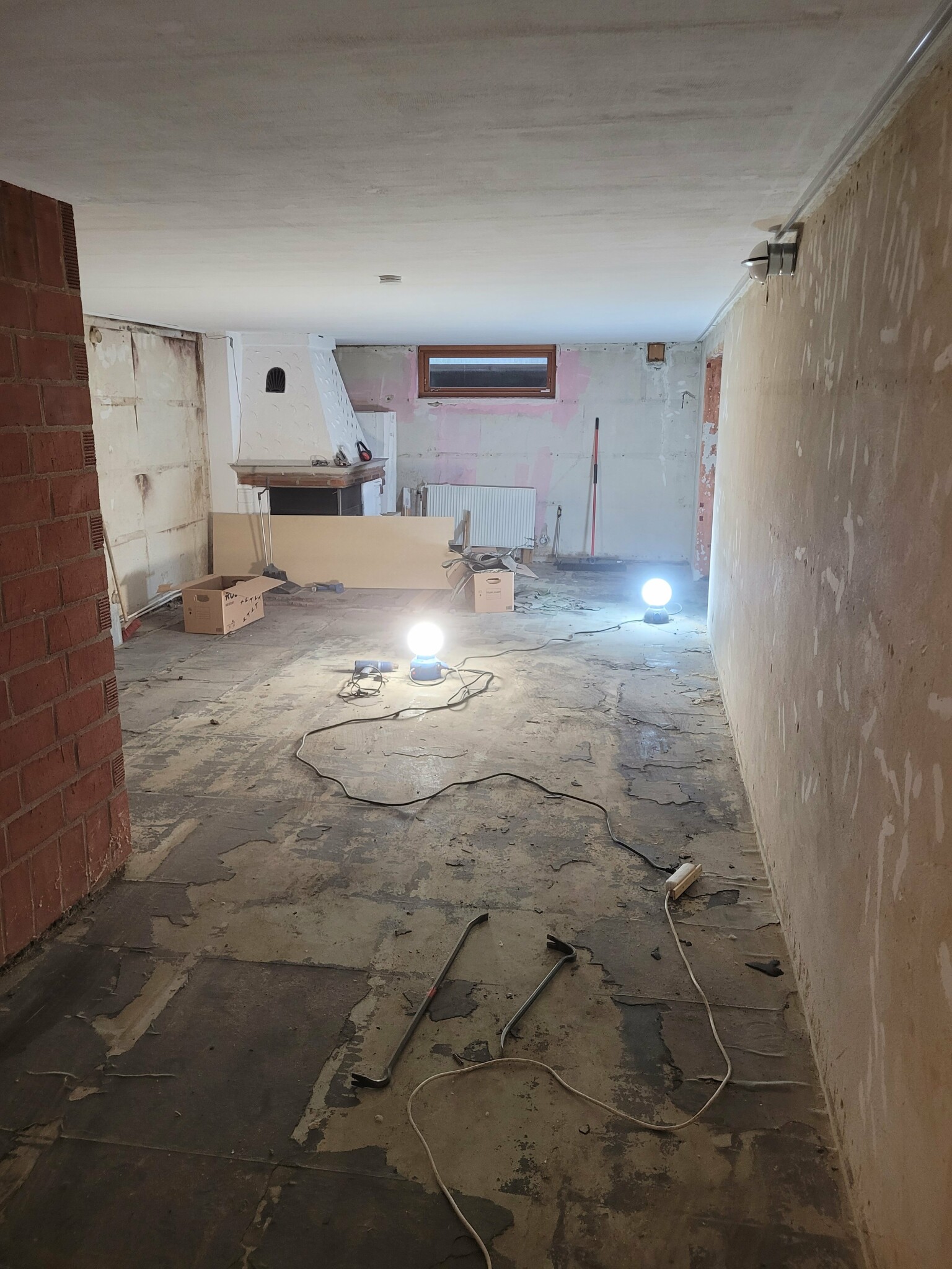 Samtidigt drar vi om elen i källaren så vi funderar på vilken belysning vi ska dra till.