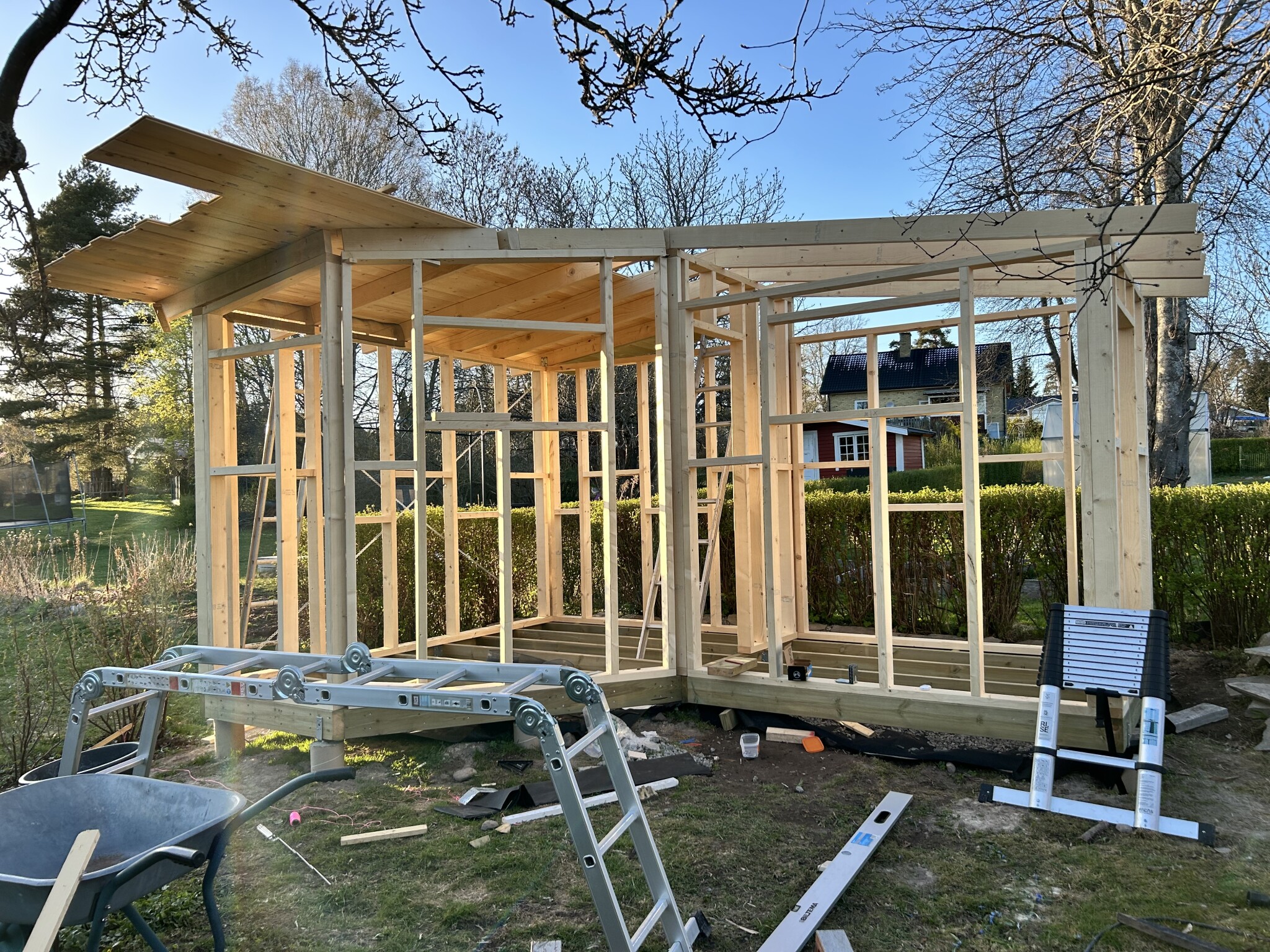 Finns en tråd om mitt bygge av en "timrad" bastustuga här: https://www.byggahus.se/forum/threads/koka-stuga-pa-en-spik.377419/