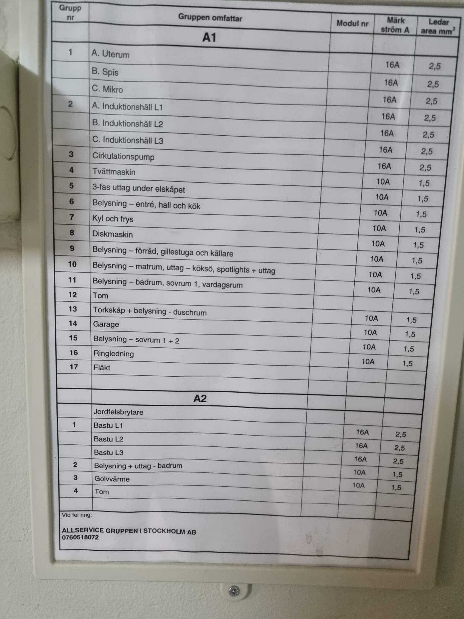 Blir inte klok på mitt proppskåp. Huset är byggt -71 och ett extra våningsplan byggdes på -82. Fattar inte var jag bryter strömmen till övervåningen. Finns ingen info på schemat om övervåningen och har skruvat ur alla omärkta säkringar utan resultat. Tidigare ägare har ingen aning och han som byggde huset 1971 dog 2017.