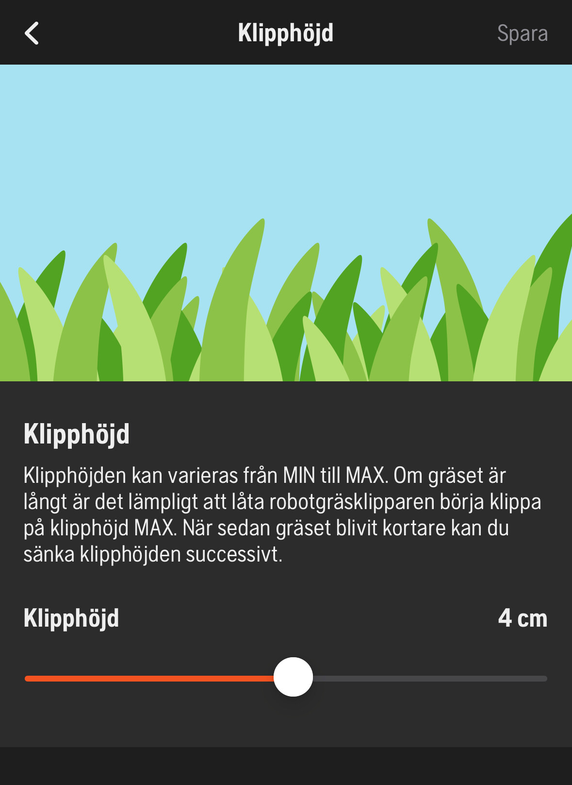 Intressant med min klipphöjd, i appen kan jag sätta upp till 9cm. Specen på klipparen säger som du påpekar en lägre maxhöjd