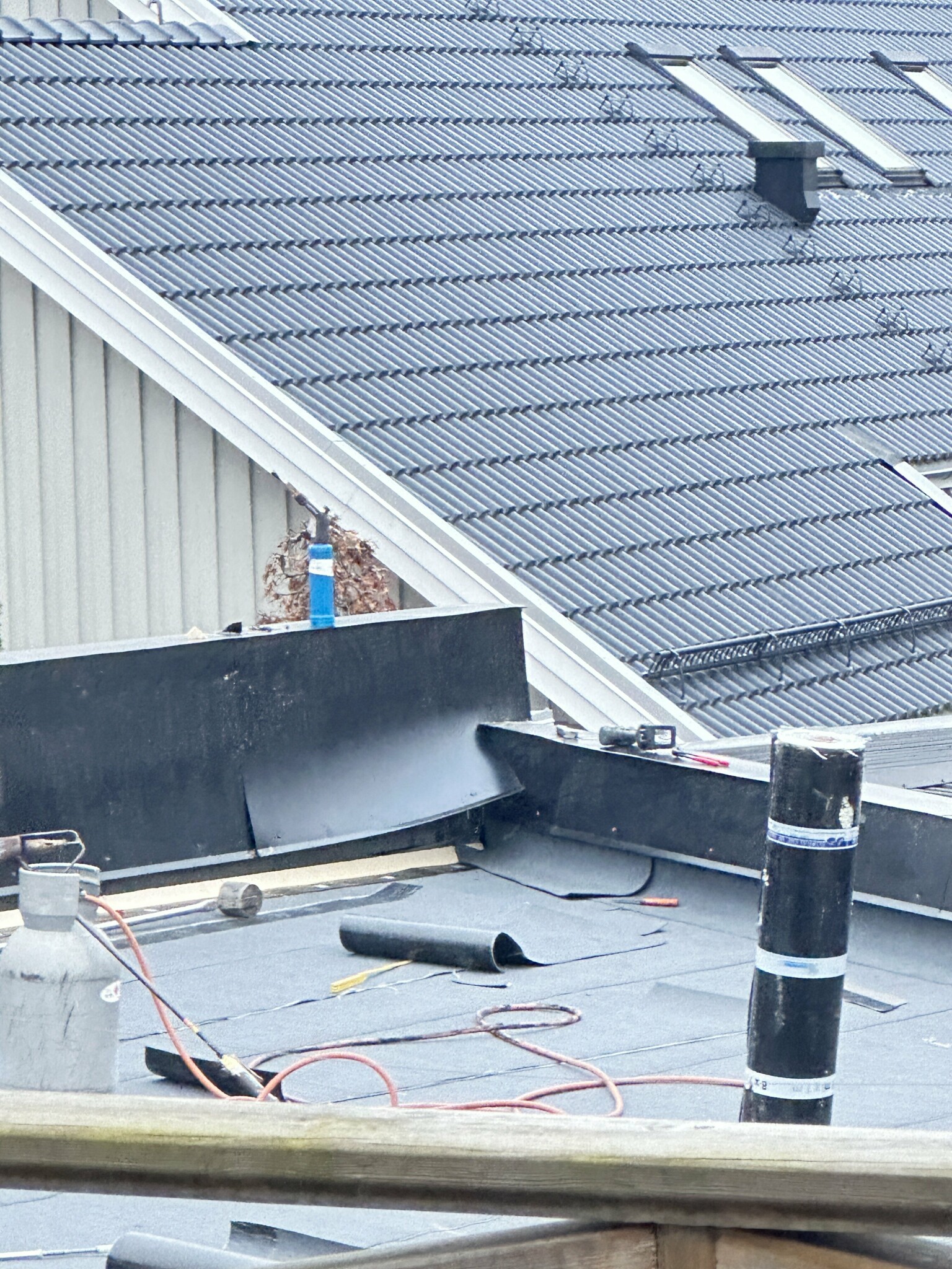 Har två stora sarger ovanför garage taket och undrar vad jag ska förvänta mig av takfirman? Hur ska de lägga takpappen under plåtpartierna?