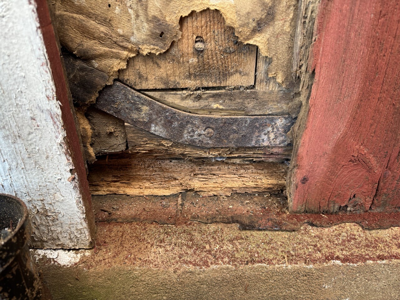 Andra vanliga orsaker är att marken höjts så att syllen hamnat alltför nära marken. Svårt att bedöma på dina bilder, men det ser inte helt optimalt ut.