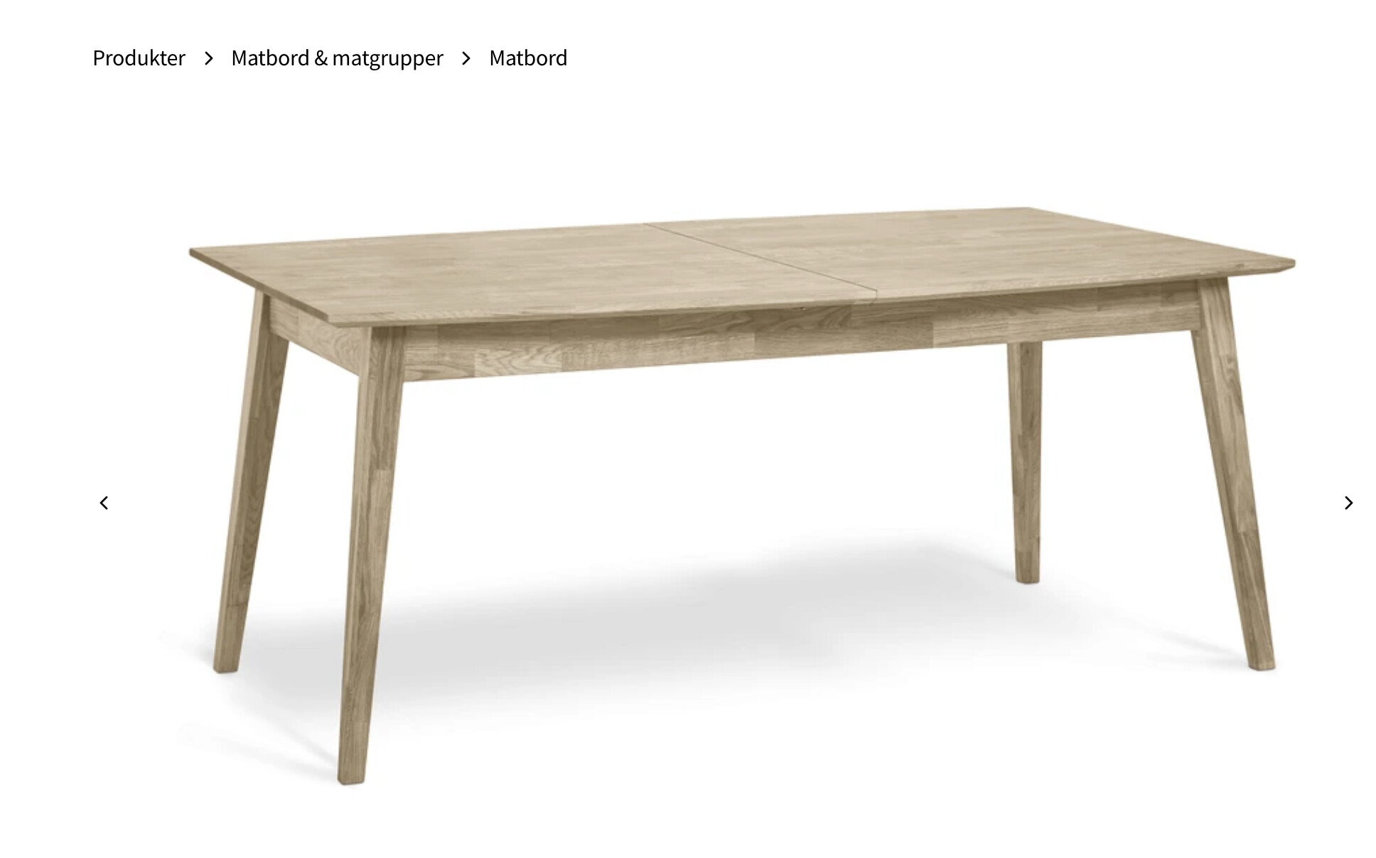 Den andra delen i rummet (längst bort i bilden), har en vägg som är 2,5 meter, och kortsidan som angränsar till köket är 2,3 meter för att sedan bli ganska fri efter diskbänkens djup på 60 cm. Här är tanken ett Mio Ekerö bord som är 170 (kan förlängas till 230) cm i längd, 90 cm i bredd.