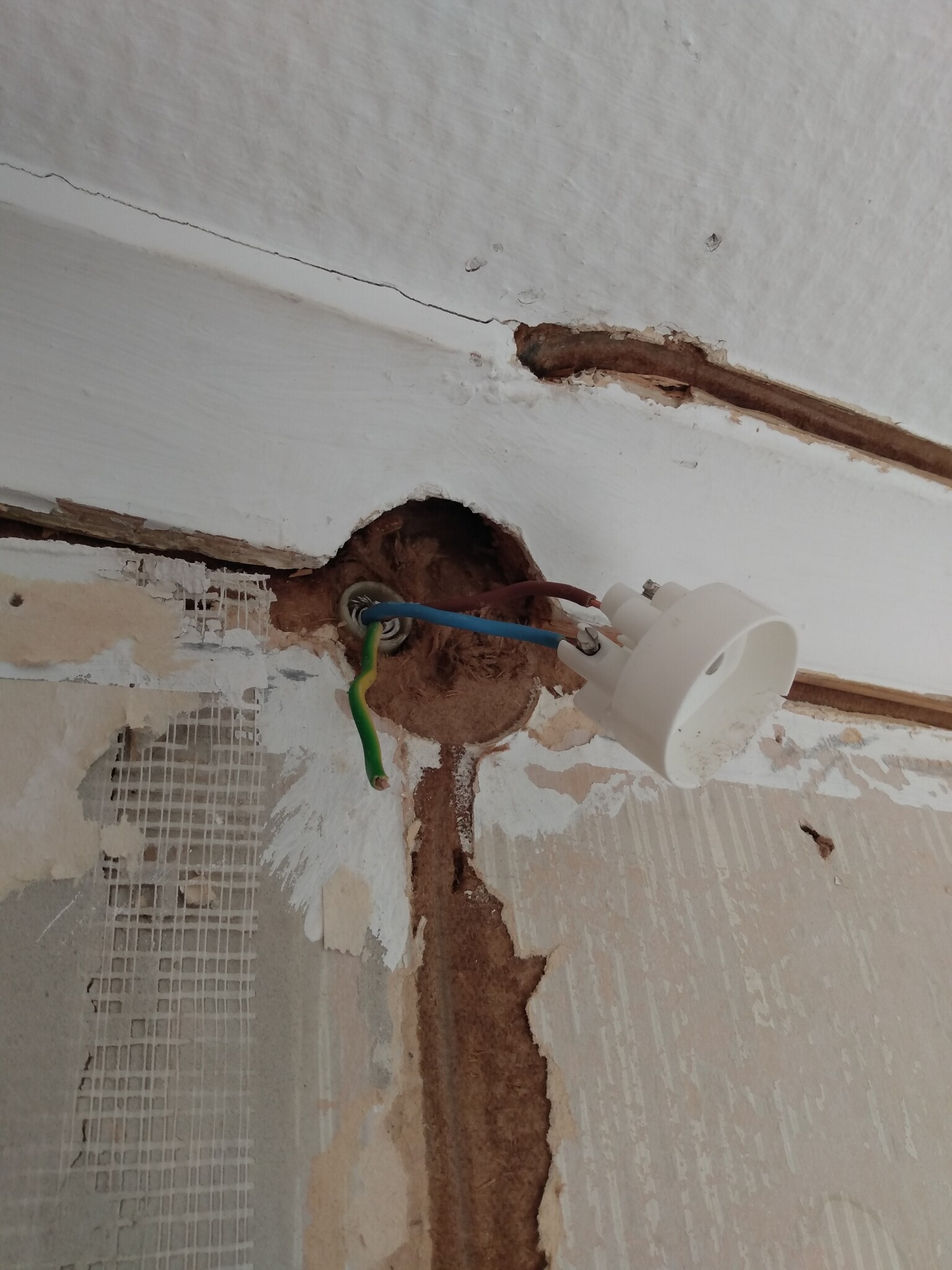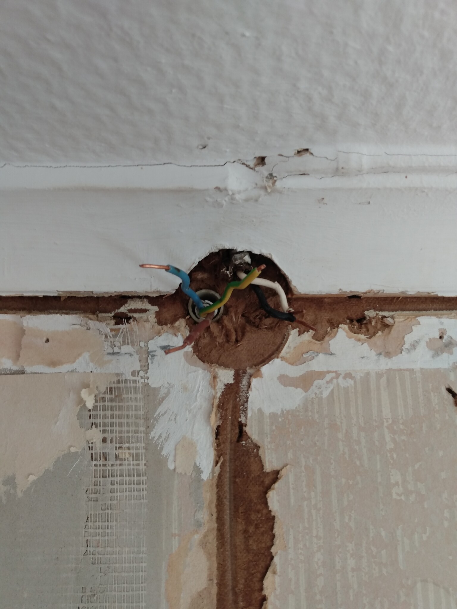 Hej, river tapeter och gammal el i sovrum. Har stängt av elen tillfälligt, matningen kommer från rummet intill. När jag slår på elen igen får jag ju el i trådarna som kommer genom väggen. Kan jag bara linda dem med eltejp så länge och inte röra dem?