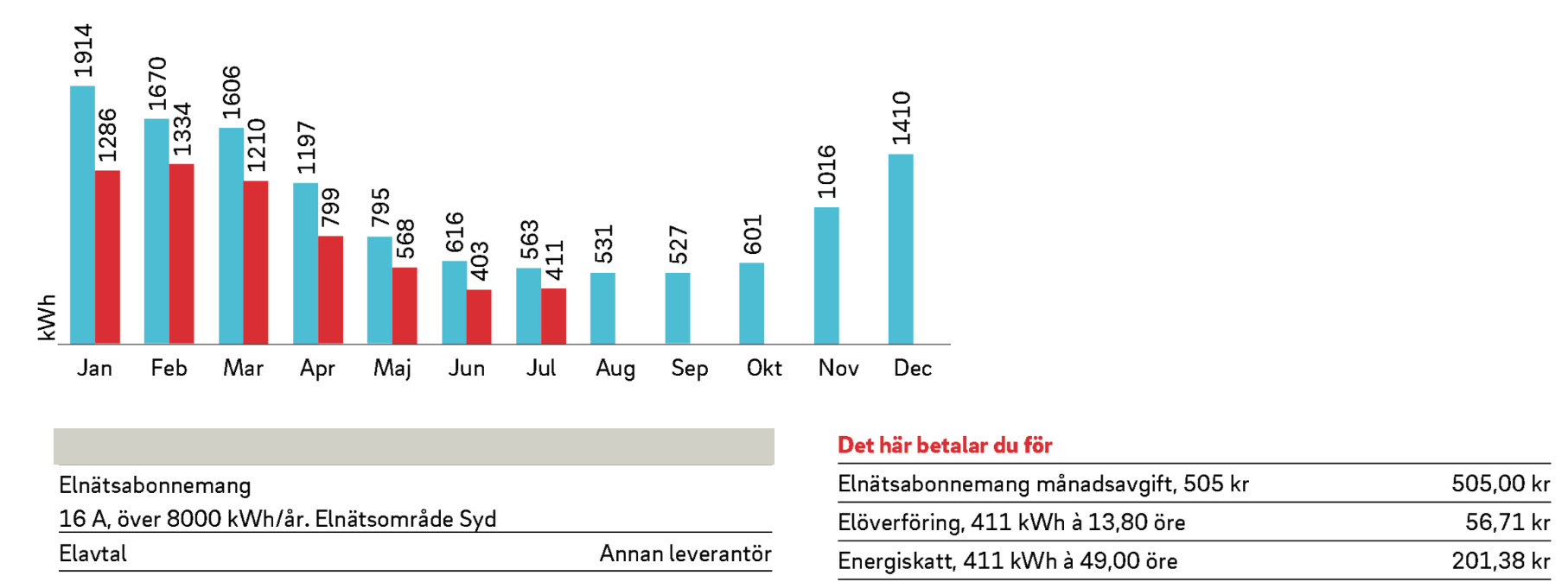 Menar du att du enligt elräkningen för juli slutade din förbrukning på ca 1600 kWh och att du uppskattar att du laddar elbilen med 6 kWh per dygn i snitt?