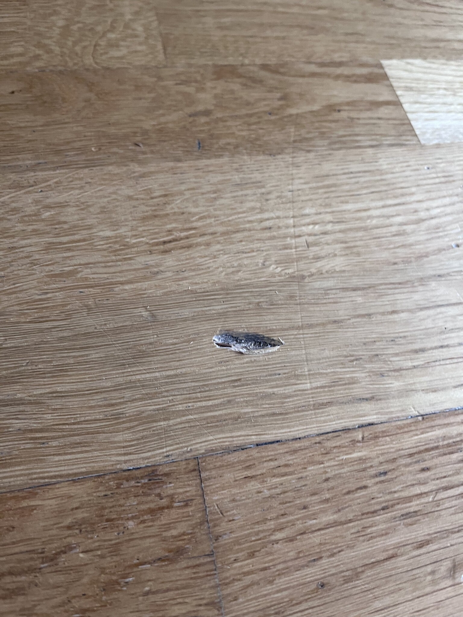För parkettgolv har t.ex. Kährs lagningskit med vaxstavar i olika färger som man kan smälta ner för att få en yta som efterliknar parkettens trämönster. Eftersom hålet är så djupt får du först fylla upp det nästan ända upp med något annat. Det blir ju inte osynligt men mycket bättre i alla fall.