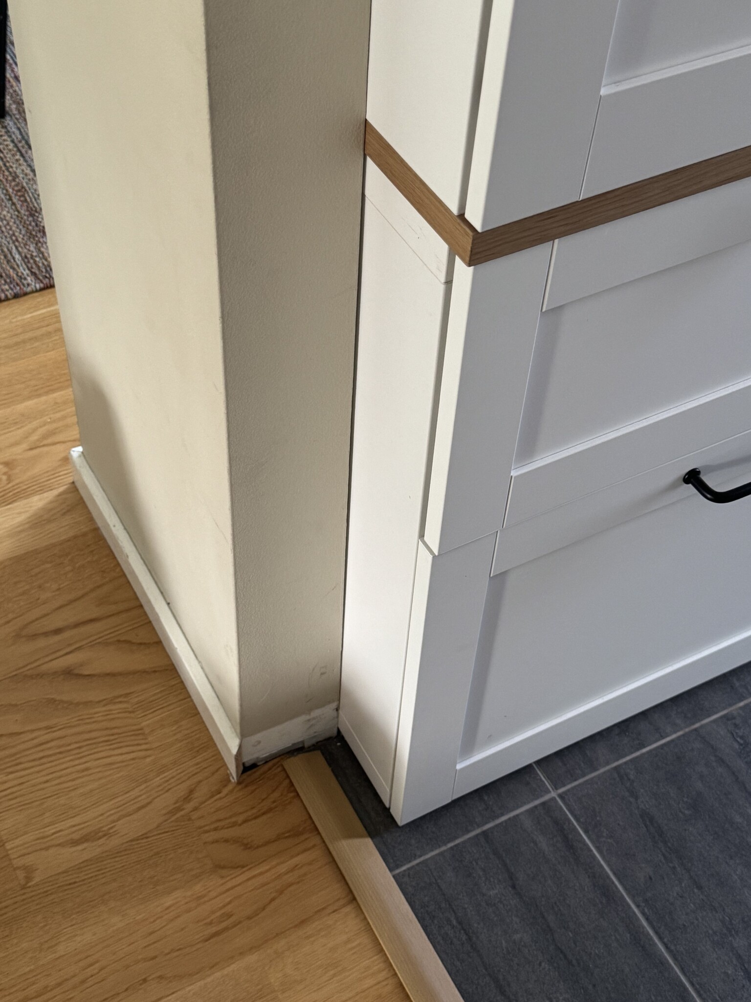 Jag behöver förlänga väggen ca 10 cm för att få hallmöbeln att se inbyggd ut. Hur kan man göra detta?