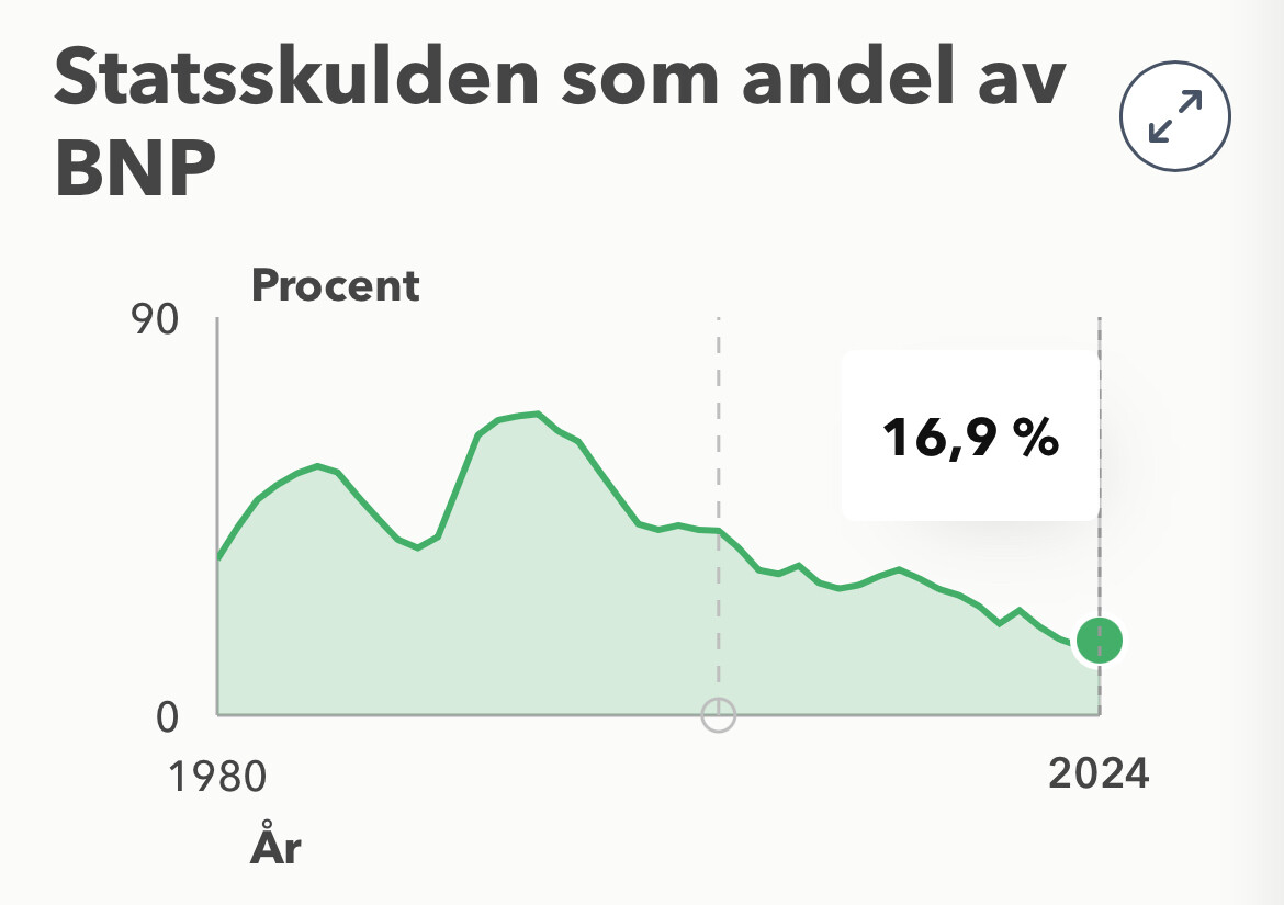 Sverige har under snart tre decennier haft statsskulden under kontroll och löpande minskat den.Intet skrev: