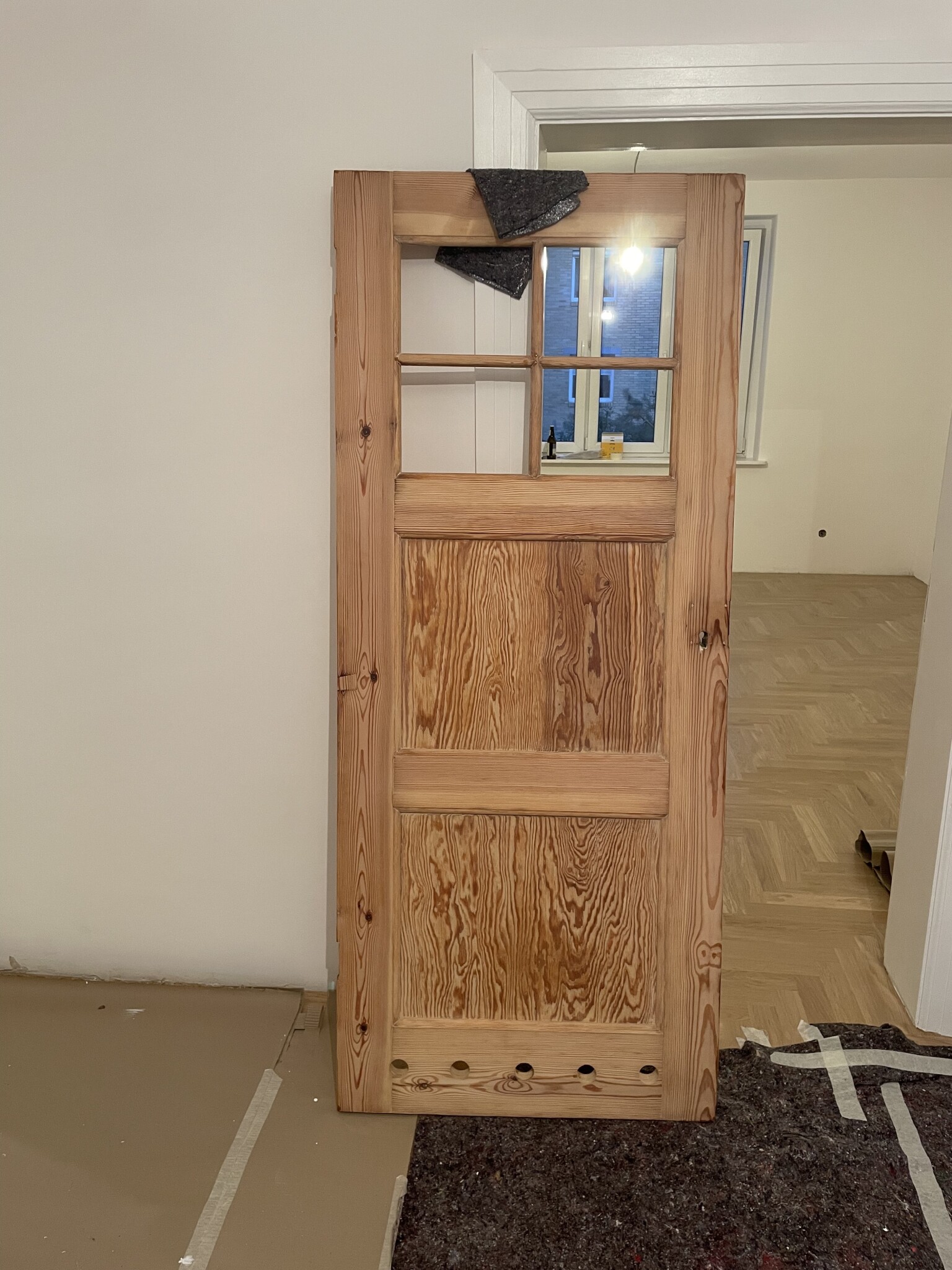 Vi har 3 innedörrar likt denna, vi provade en matt-lack på en provbit, och det blev alldeles för gult. Hur kan man behandla dom. Pigmenterad lack, i så fall vilken kulör? Vid brun är jag rädd att det riskerar att se målat ut, med vit kanske laserat.
