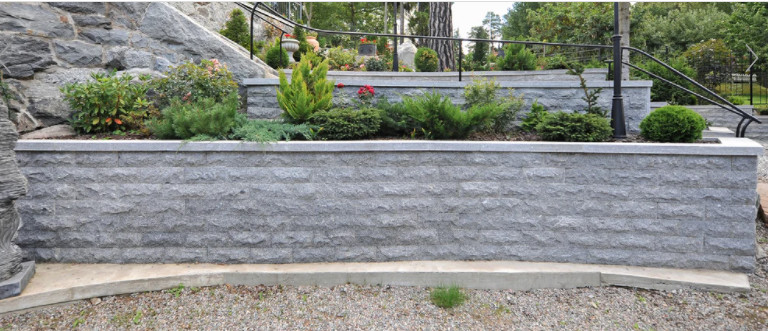 Ytterligare ett alternativ som övervägs är att bygga en mur av mursten i granit. Blocken ska enligt leverantören gå att montera med lim och då kunna utgöra en stödmur som tar upp en höjd skillnad på upp till 60 cm, vilket skulle räcka i mitt fall.