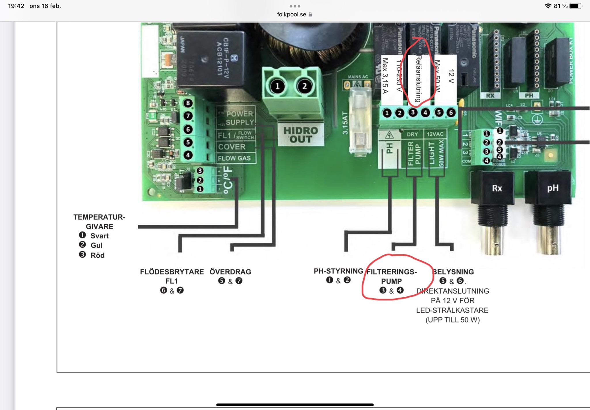 dock står det inte ett ord i manualen från Hayward. Endast den bilden på kretskortet som jag bifogat. Och Folkpool är ju inte superhjälpsamma här, de menar att detta får jag ta med en elektriker. Och den elektriker jag anlitat vet inte heller…